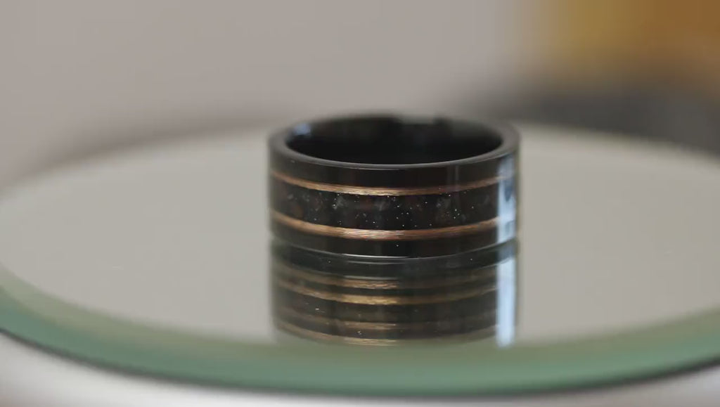 Meteorite ring Megalodon shark teeth crushed black Tungsten Carbide Ring- Custom Order