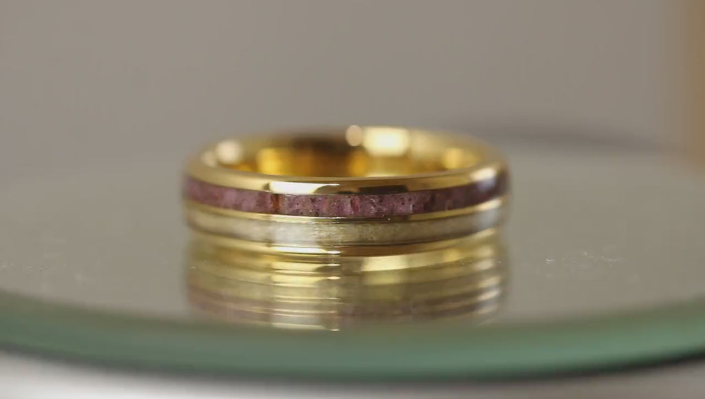 Red Garnet White Birch Wood Yellow Gold Tungsten Carbide Rings - Custom Order
