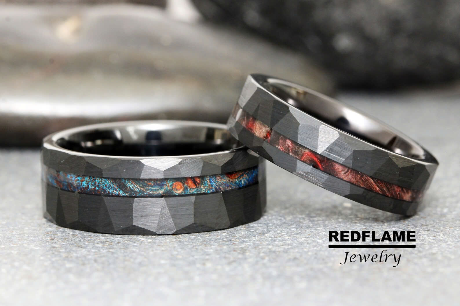 Red Starry Night Wood Ring Starry Night Silver Gray Tungsten Carbide Rings - Custom Order