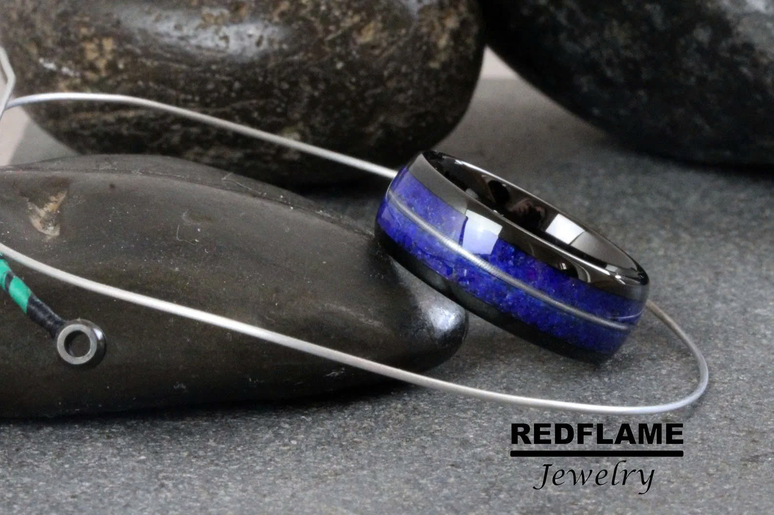 Lapis Lazuli Violin String Black Tungsten Carbide Rings - Custom Order