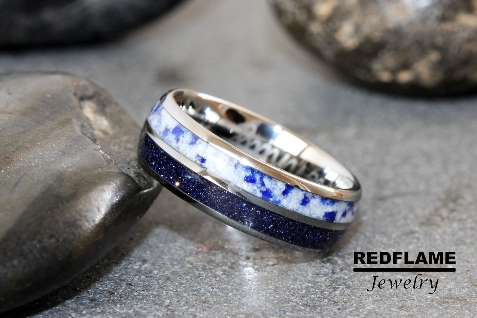 Alexandrite Crushed Your own sand Black Tungsten Carbide Rings - Custom Order