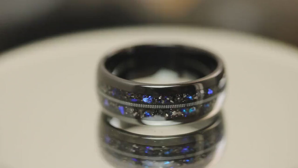 Nebula blue stone Gibeon Meteorite BLack Tungsten Carbide Rings - Custom Order