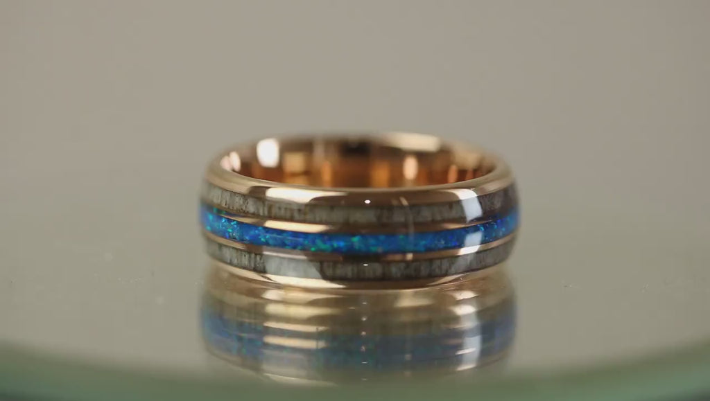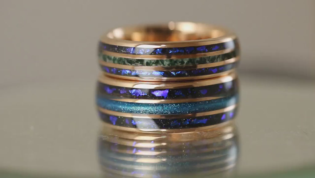 Blue Ocean Opal Rose Glod Tungsten Carbide Rings - Custom Orde