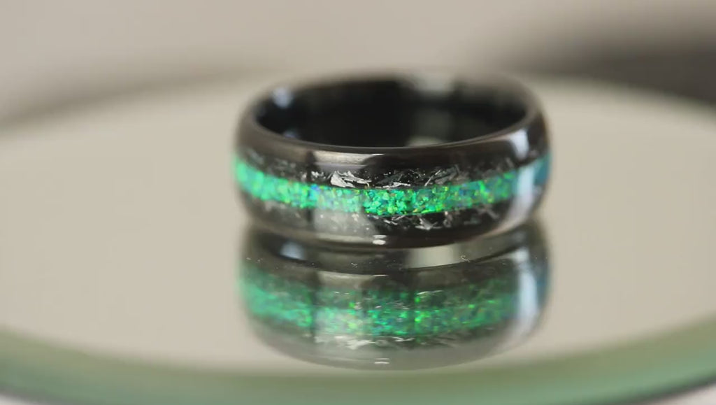 Peacock Opal Meteorite Black Tungsten Carbide Ring- Custom Order