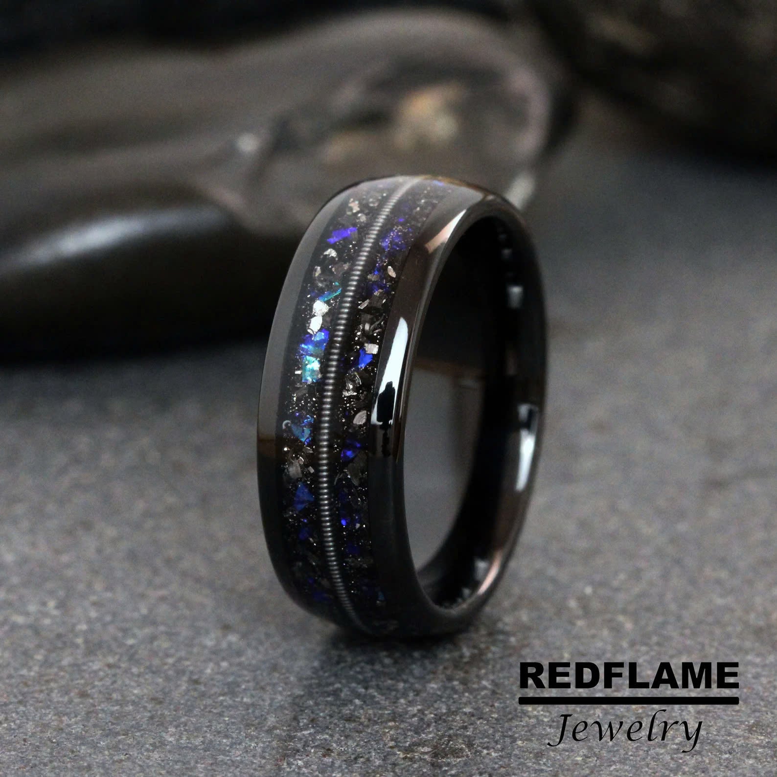 Nebula Bluestone Guitar String Meteorite Black Tungsten Carbide Rings - Custom Order