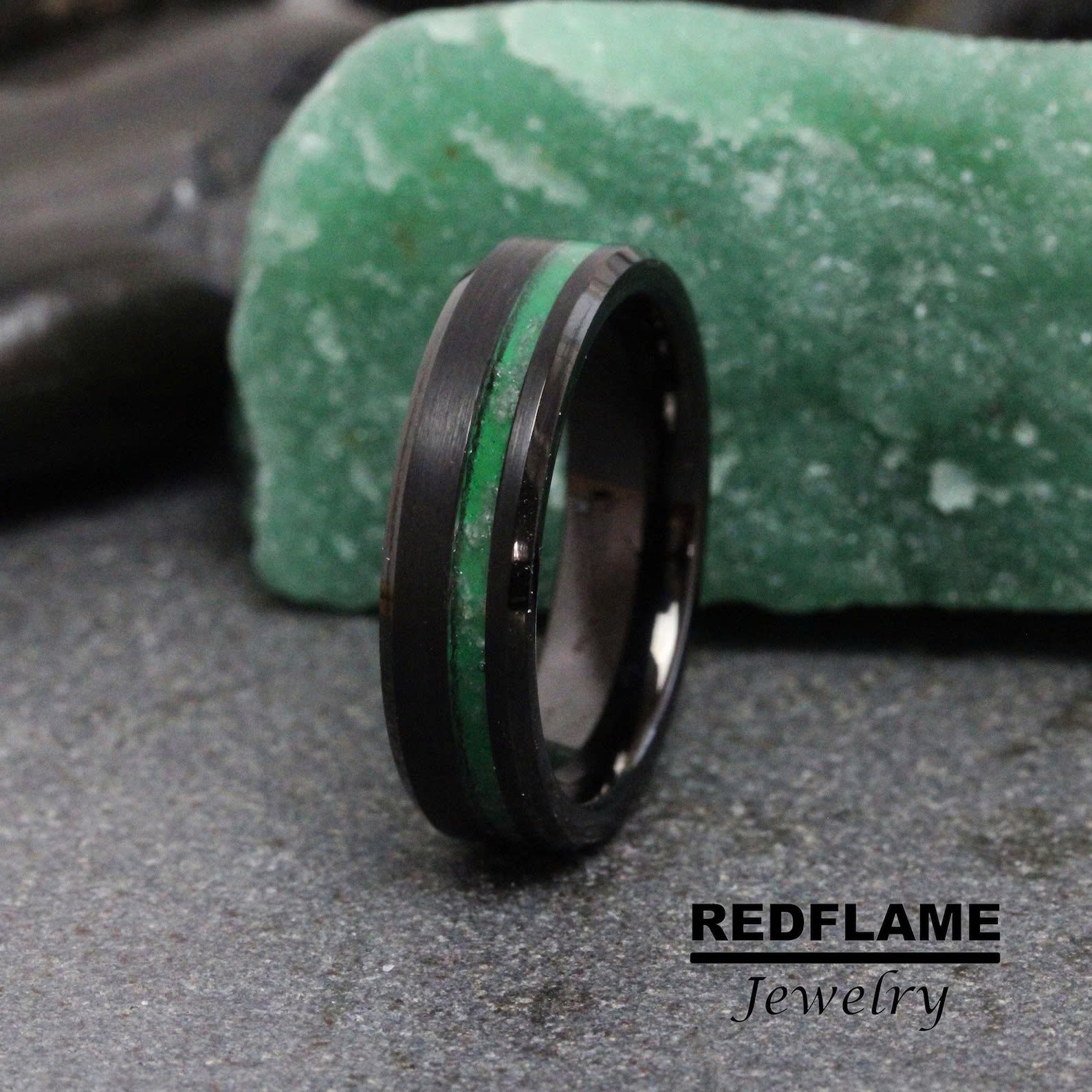 Green Quartz Black Tungsten Carbide Rings - Custom Order