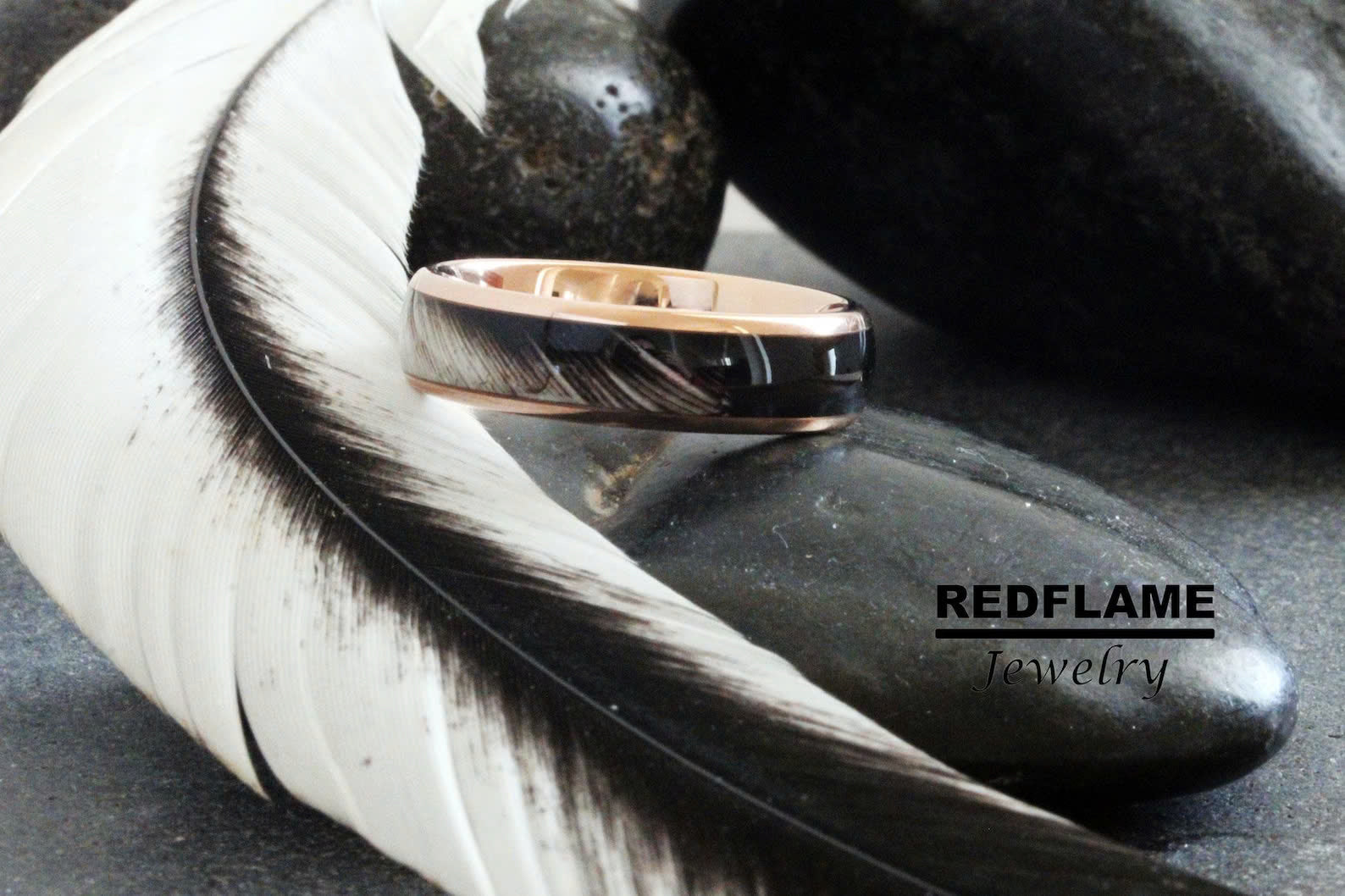 Chicken Feather Rose Gold Tungsten Carbide Rings - Custom Order