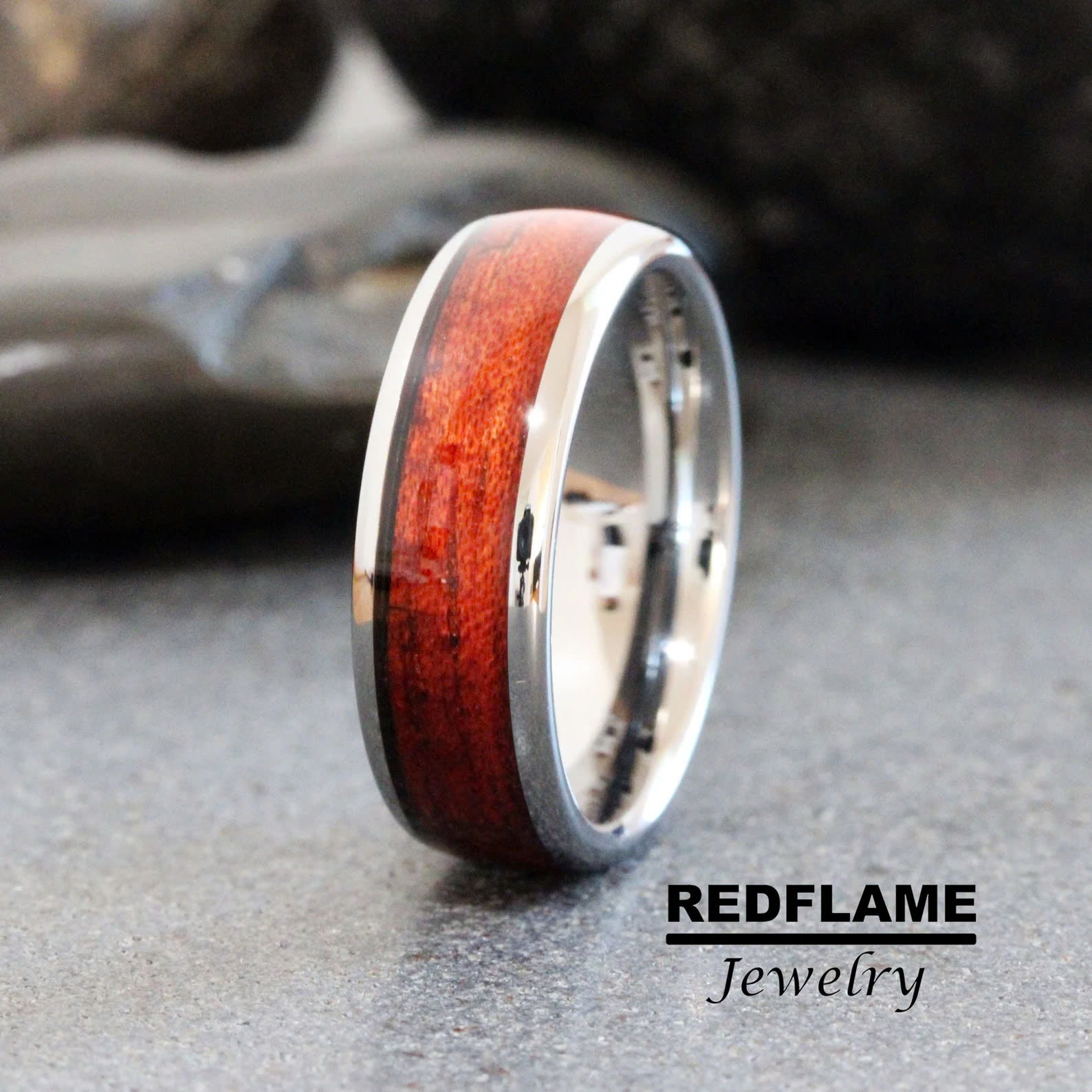 Red Katalox Wood Black Tungsten Carbide Rings - Custom Order