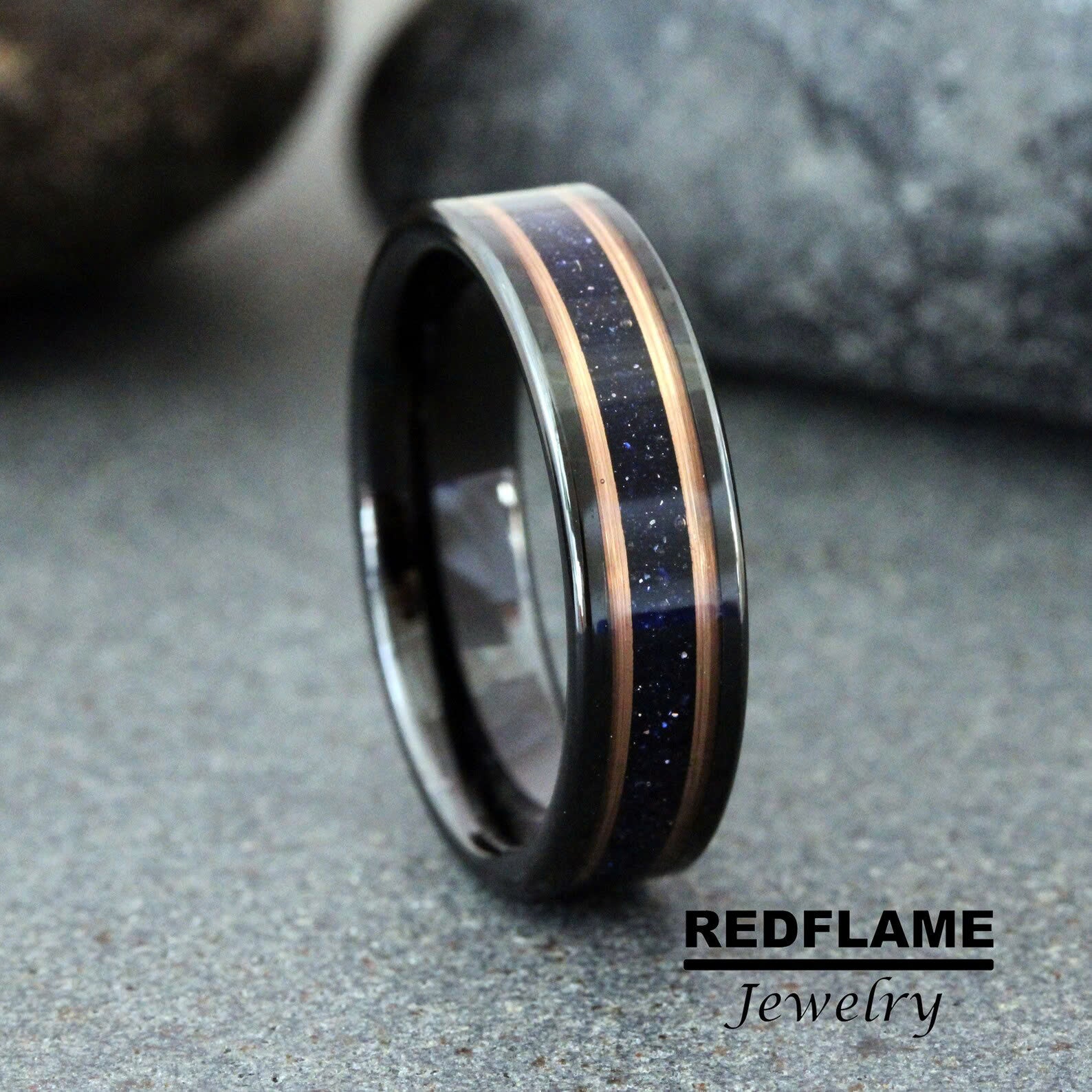 Nebula Bluestone Universe Rose Gold Balck Tungsten Carbide Rings - Custom Order