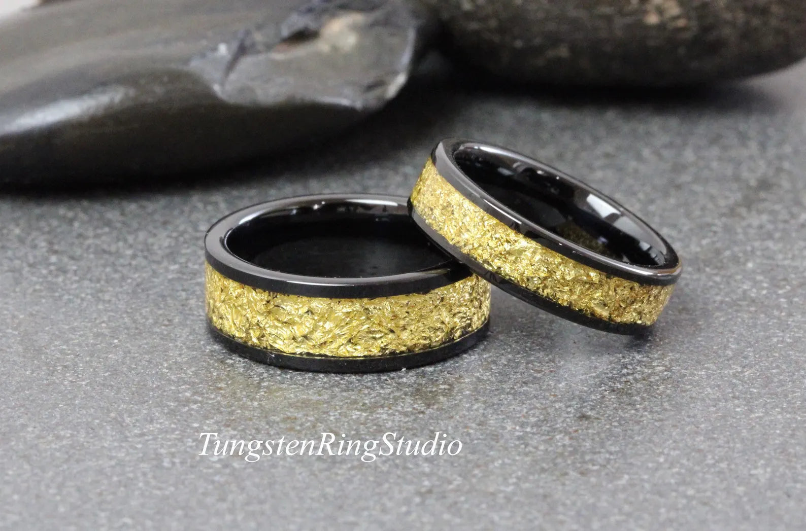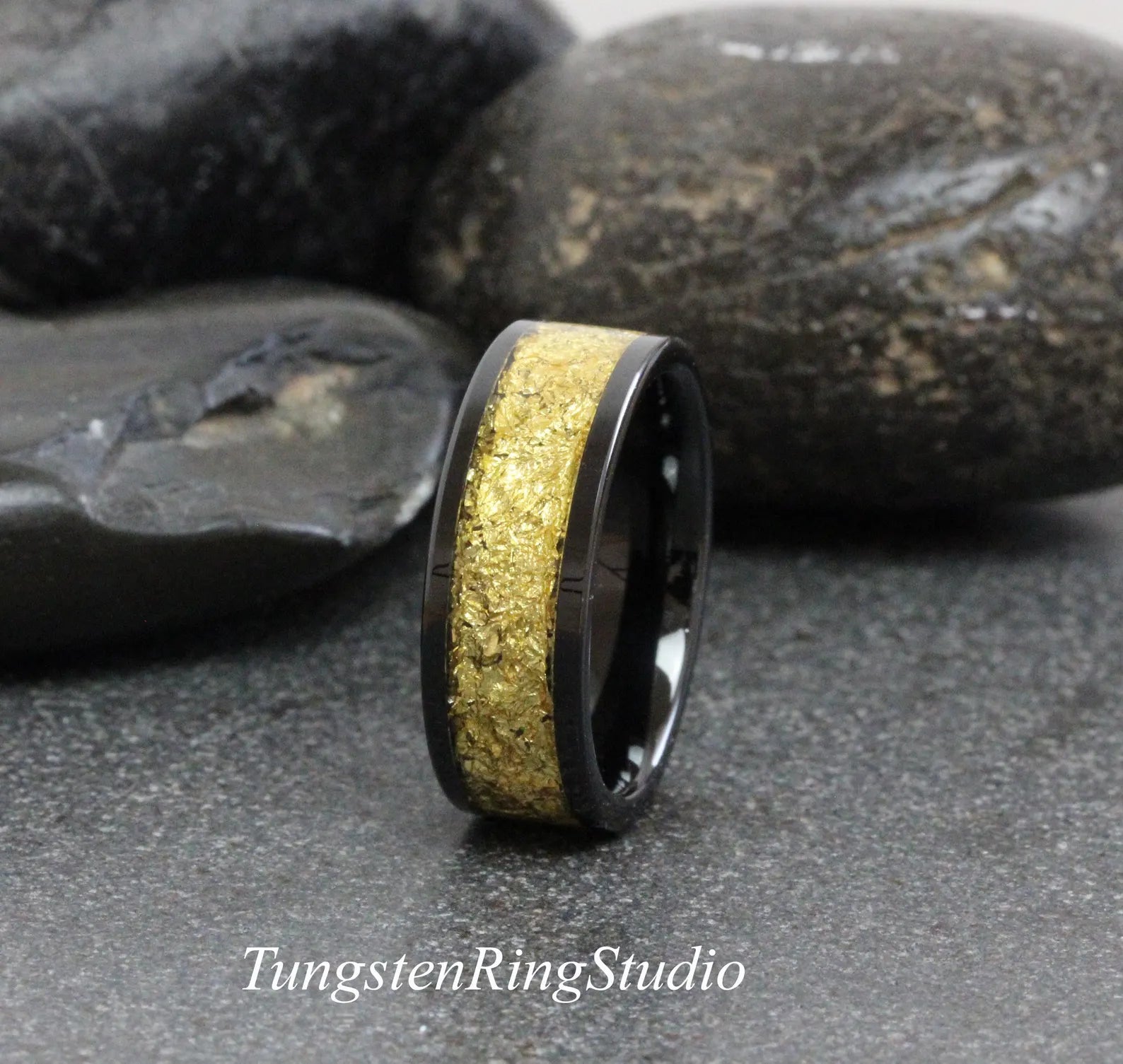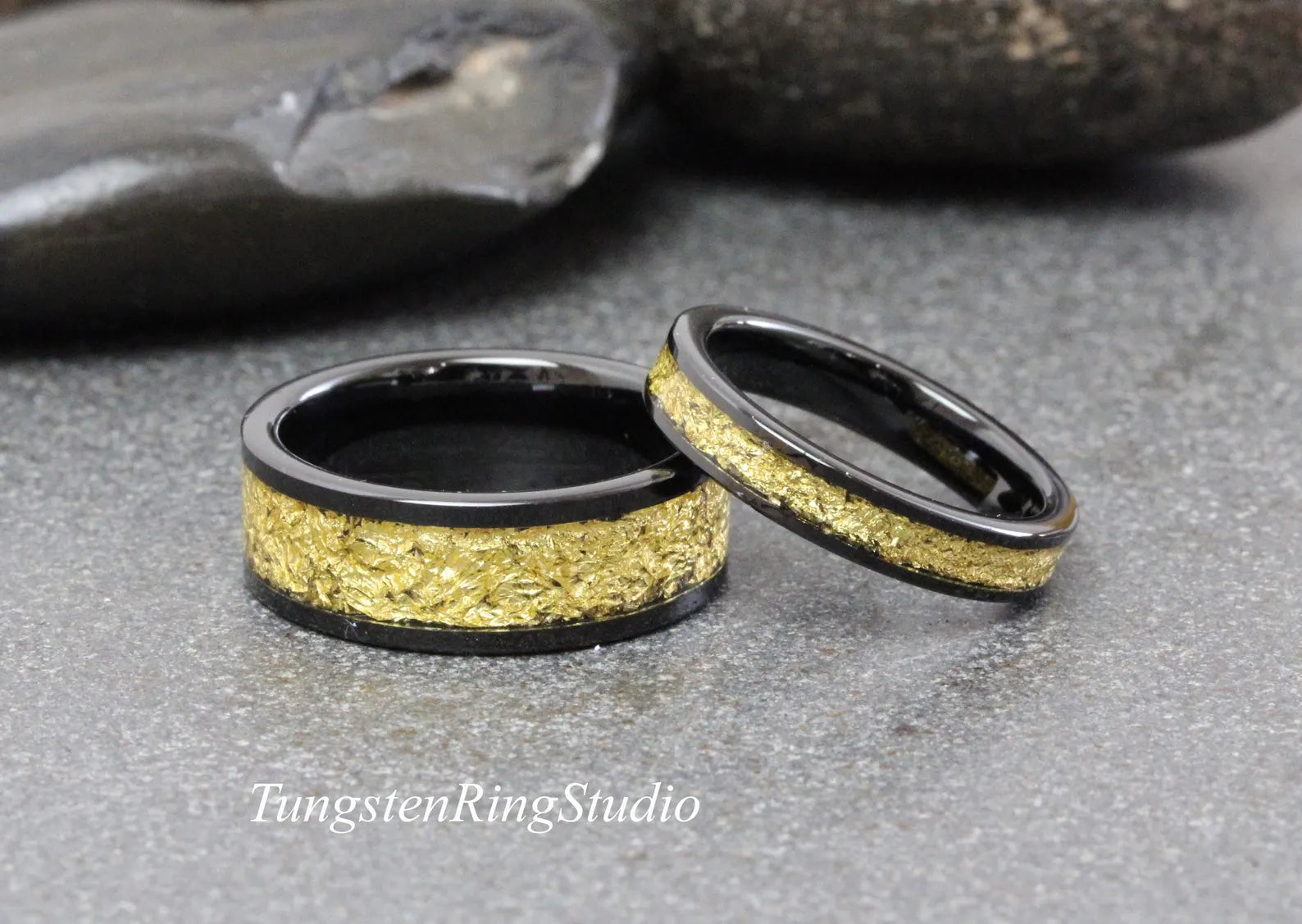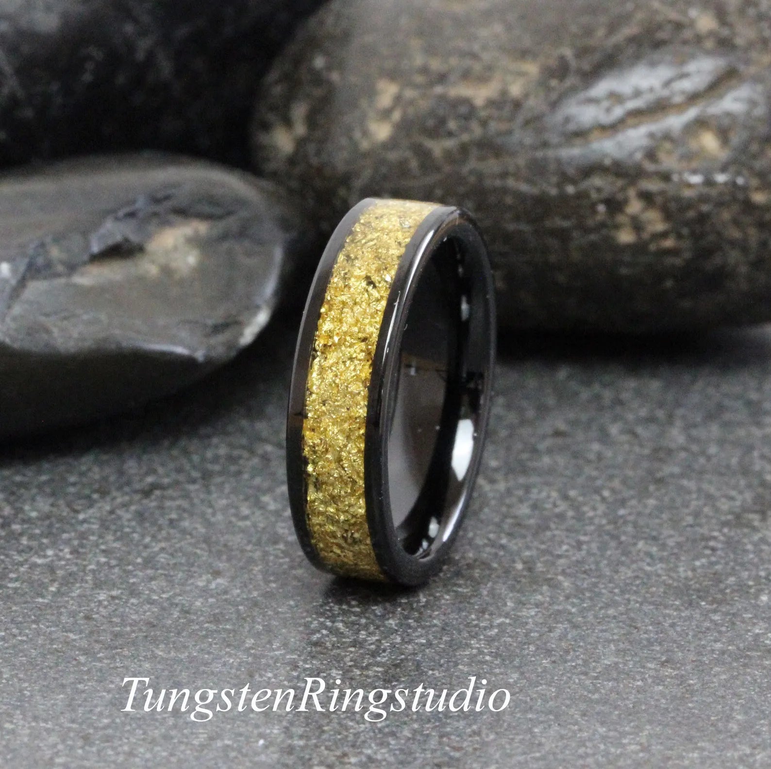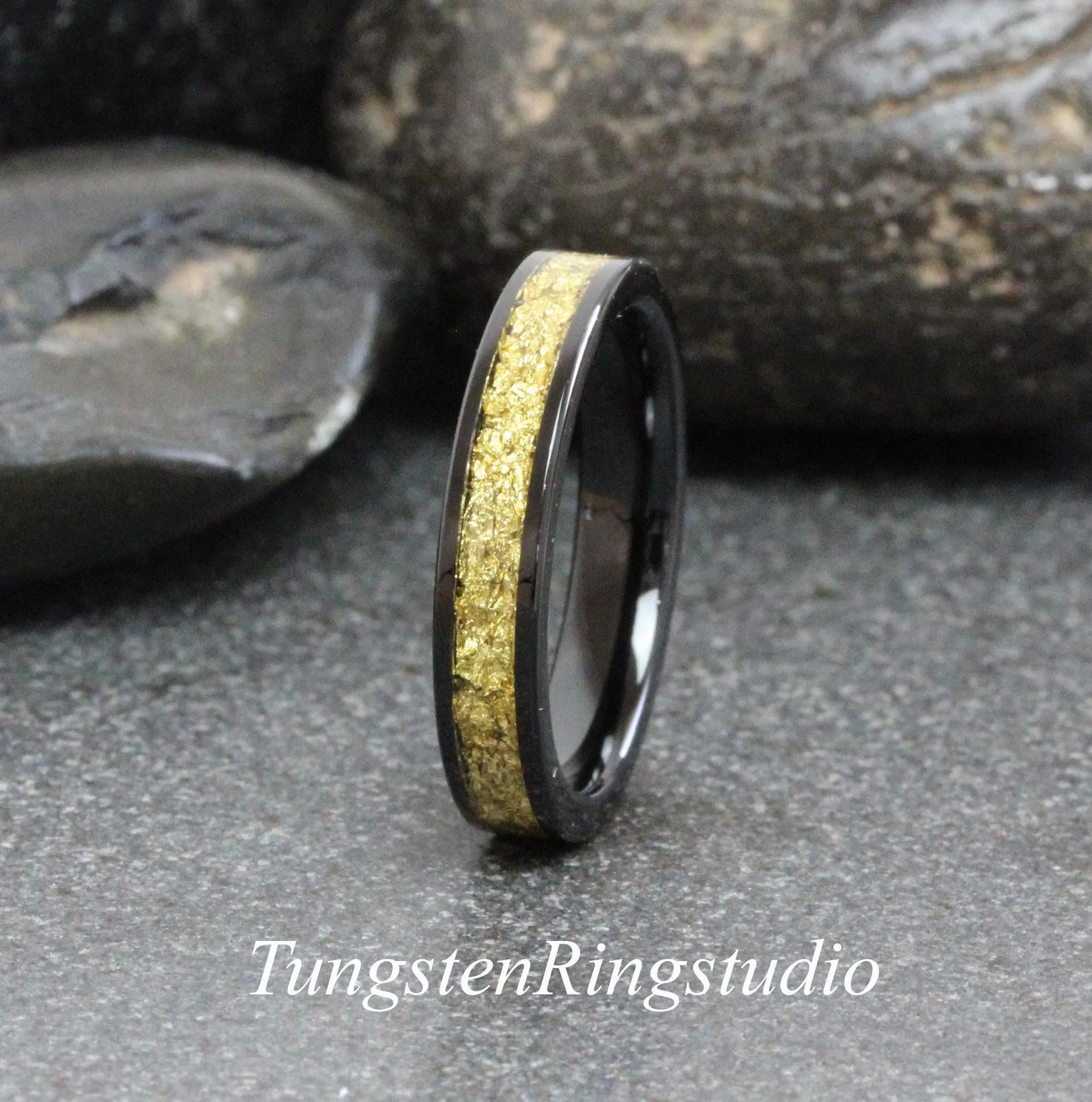 18K Gold Leaf Black Tungsten Carbide Ring 4mm – TungstenRingStudio