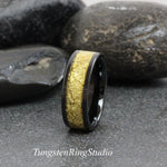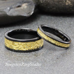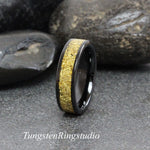 18K Gold Leaf Black Tungsten Carbide Ring 4mm