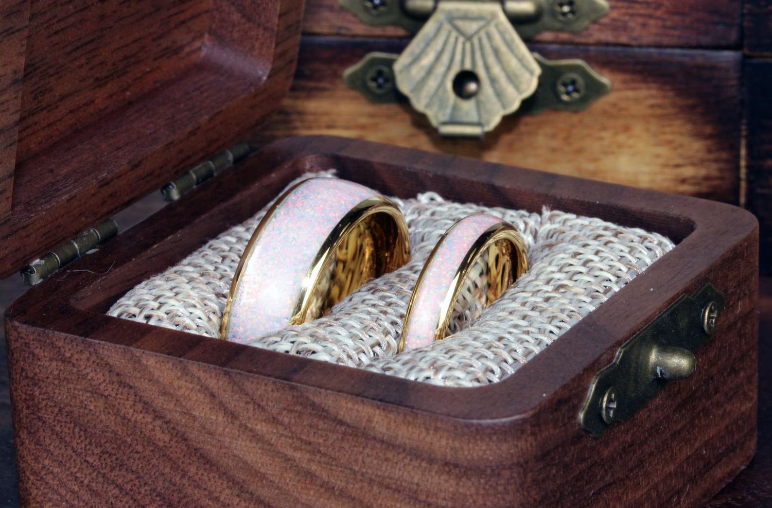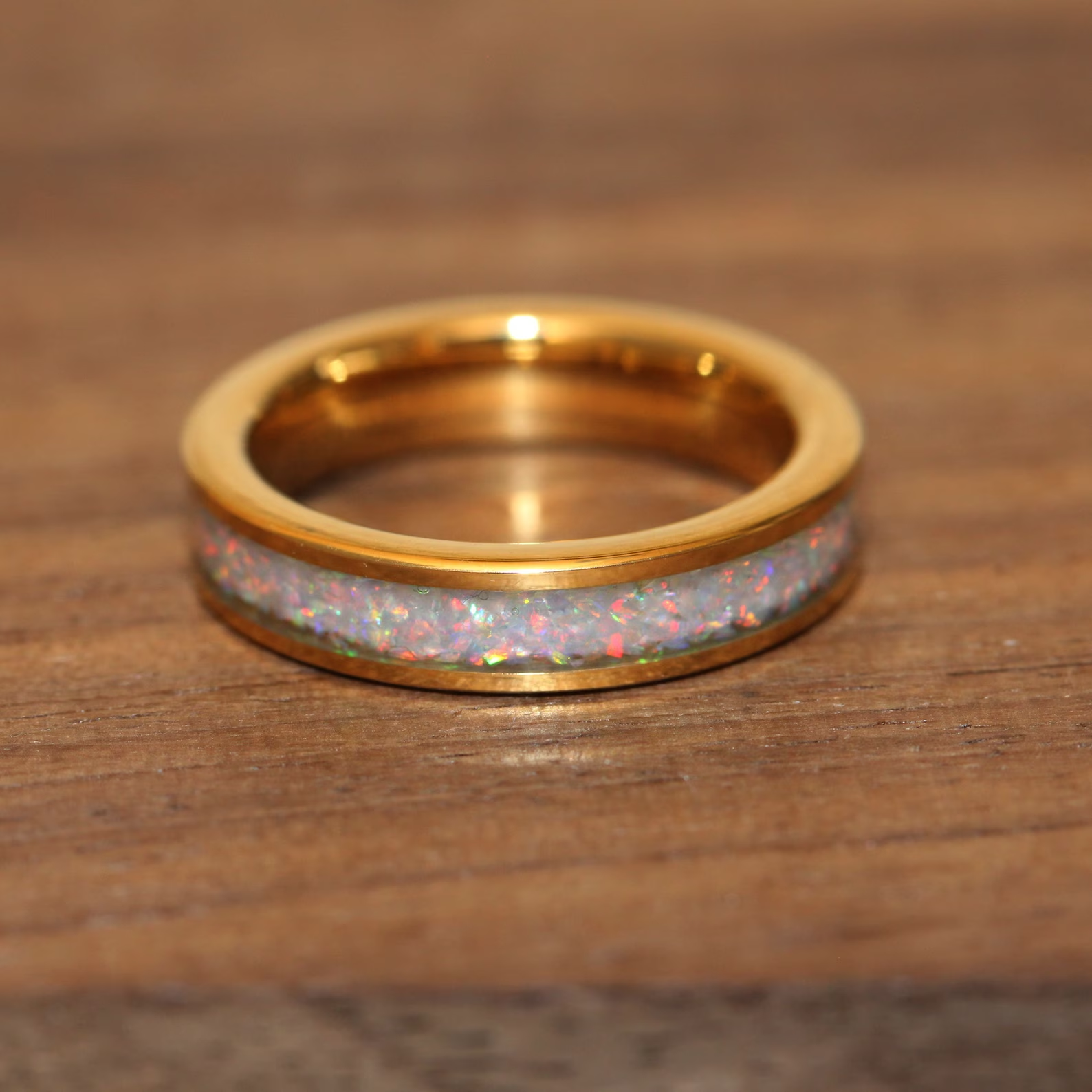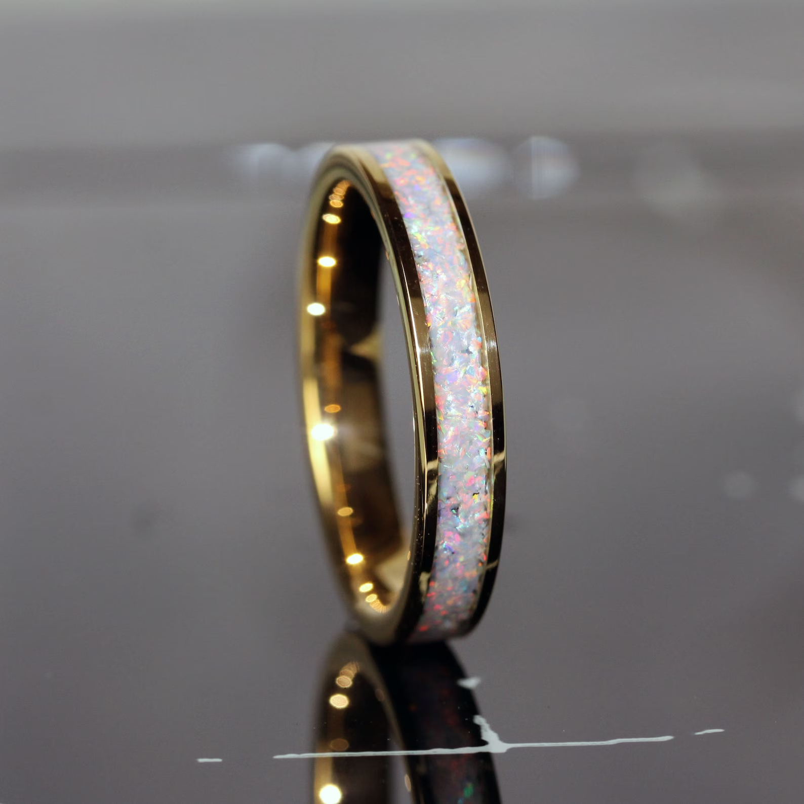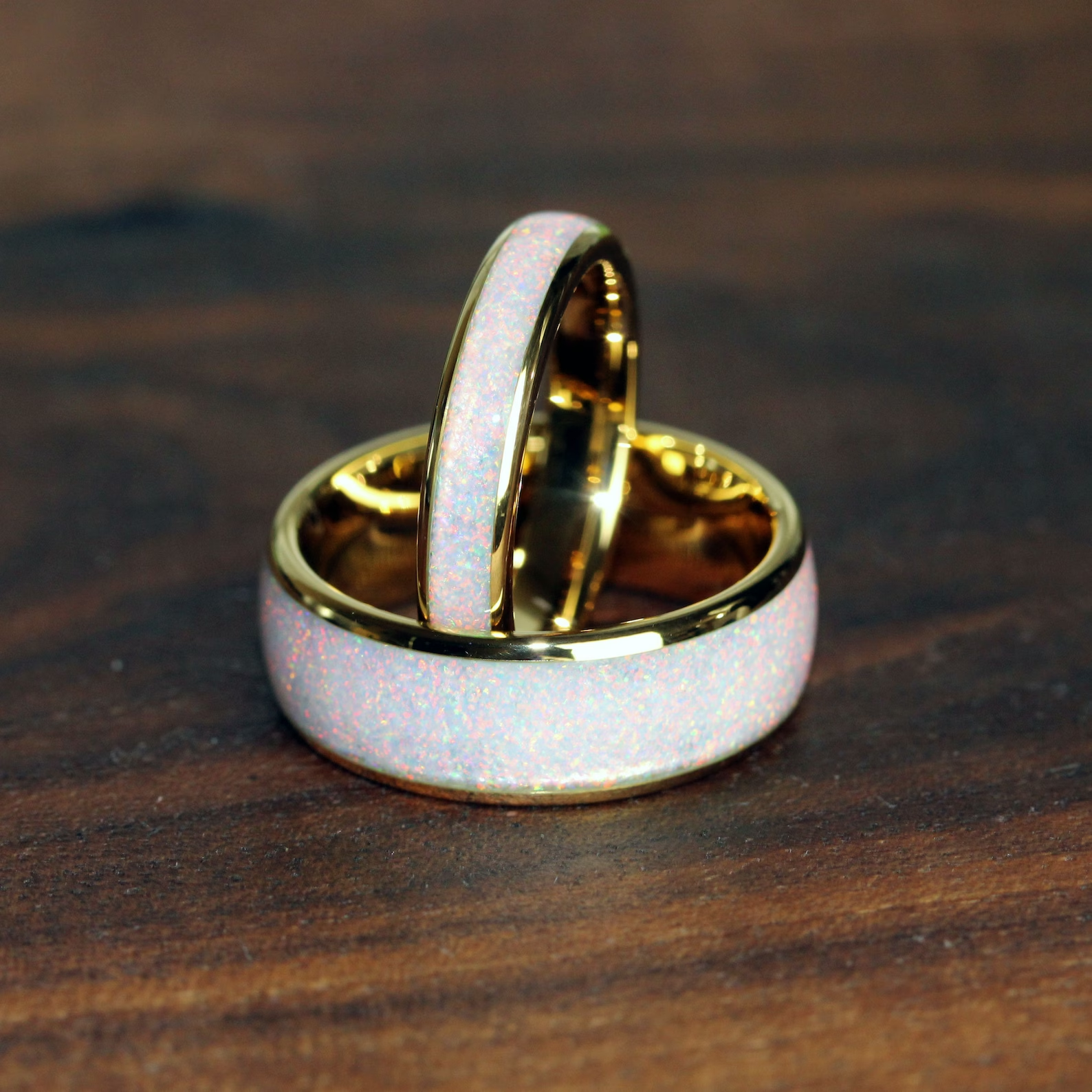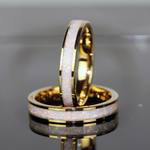 Fire and Snow White Opal Inlaid Yellow Gold Tungsten Carbide Ring – TungstenRingStudio