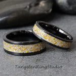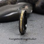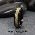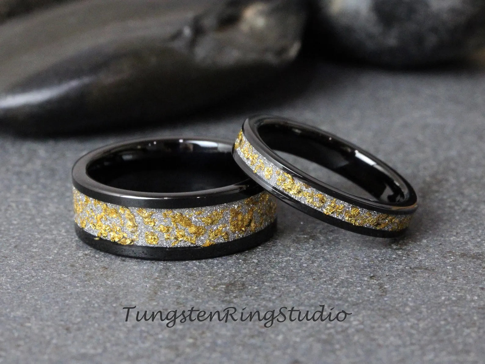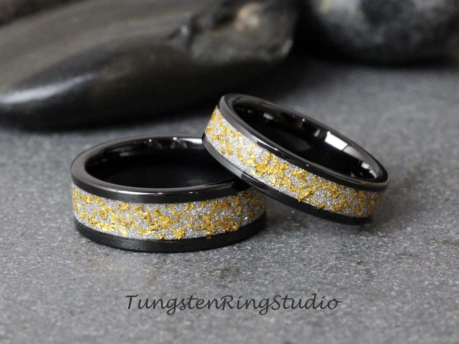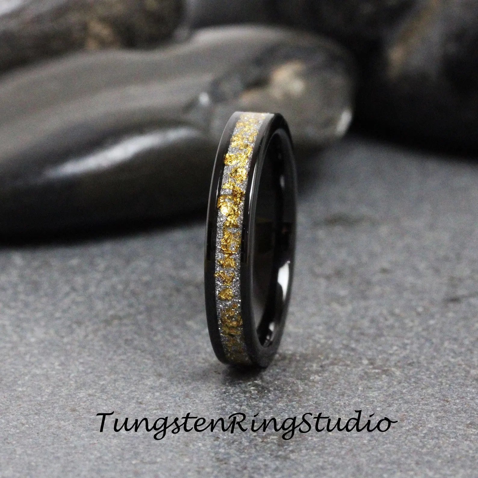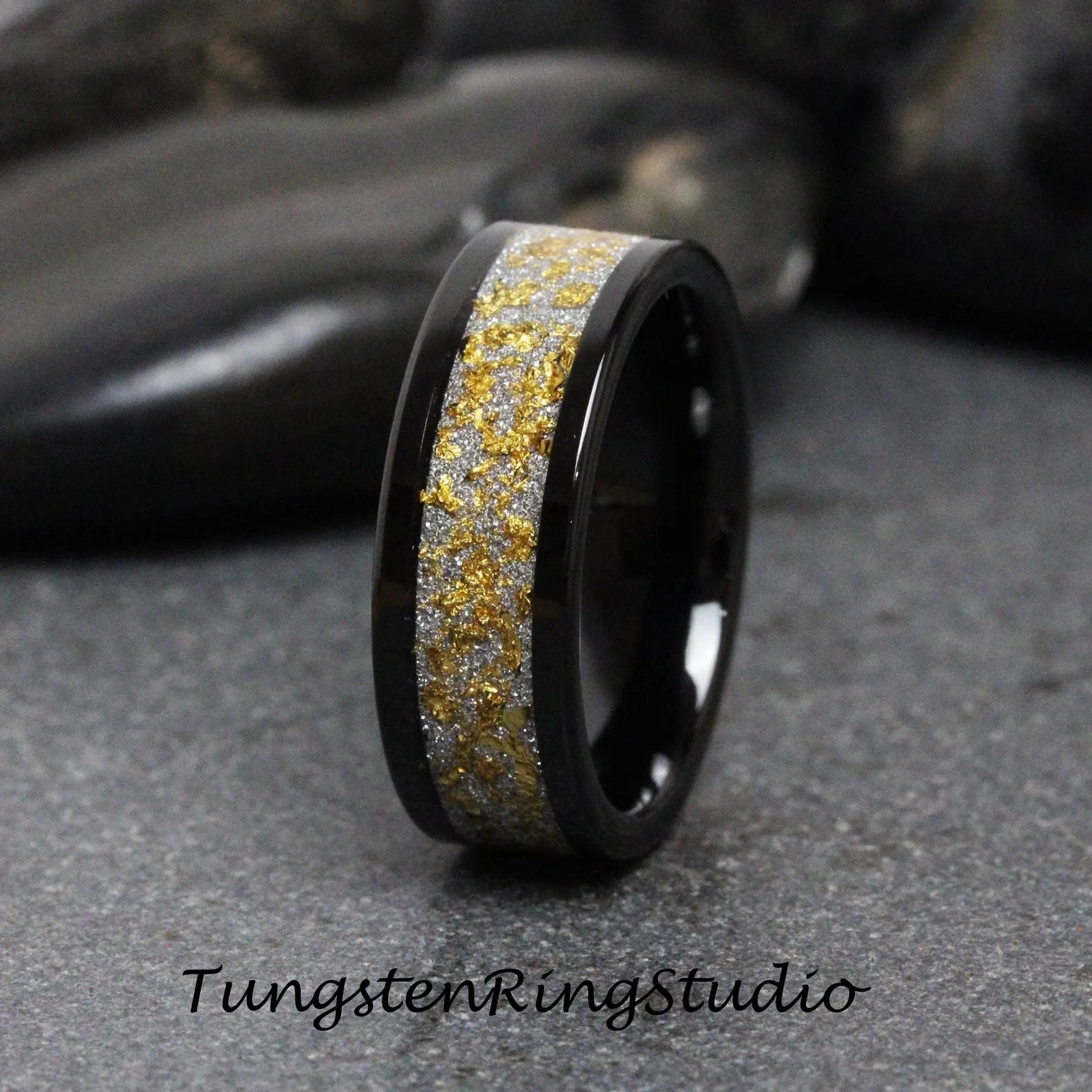 24K Gold Leaf Meteorite Black Tungsten Carbide Ring 8mm – TungstenRingStudio