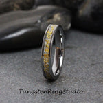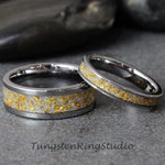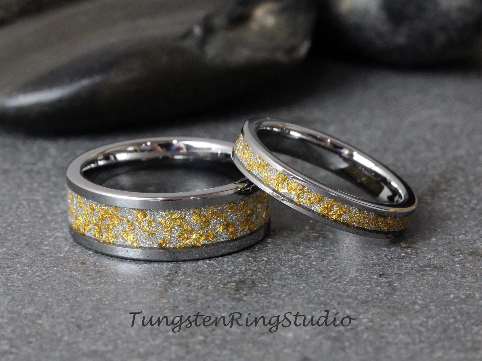 Dainty Gold Leaf Silver Wedding Ring 24K Gold Foil Silver Gray Tungsten Carbide 4mm 6mm 8mm Foil Leaf Ring Mens Wedding Rings Gold Accent