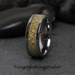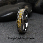 24K Gold Leaf Silver Gray Tungsten Carbide Ring 8mm