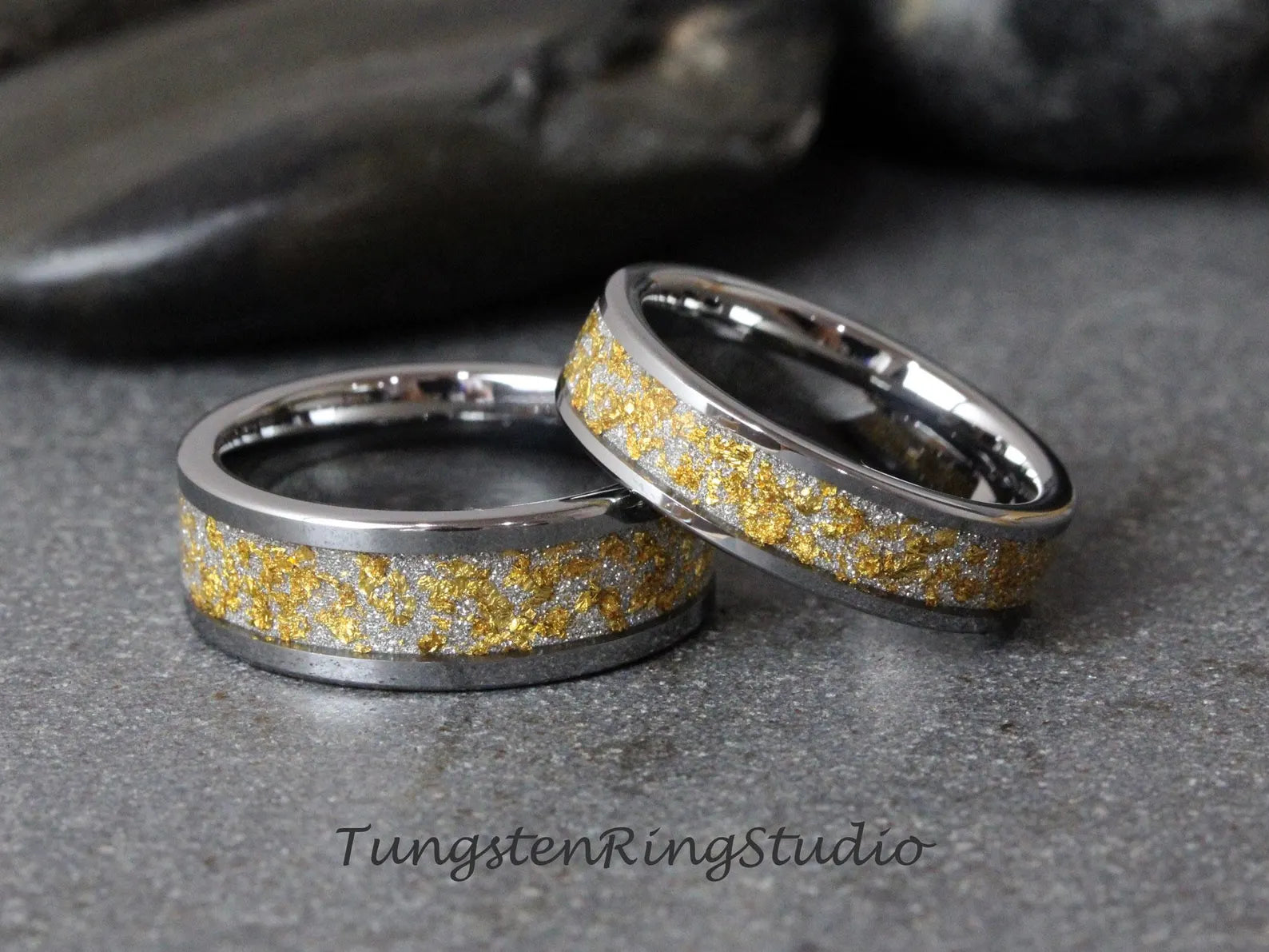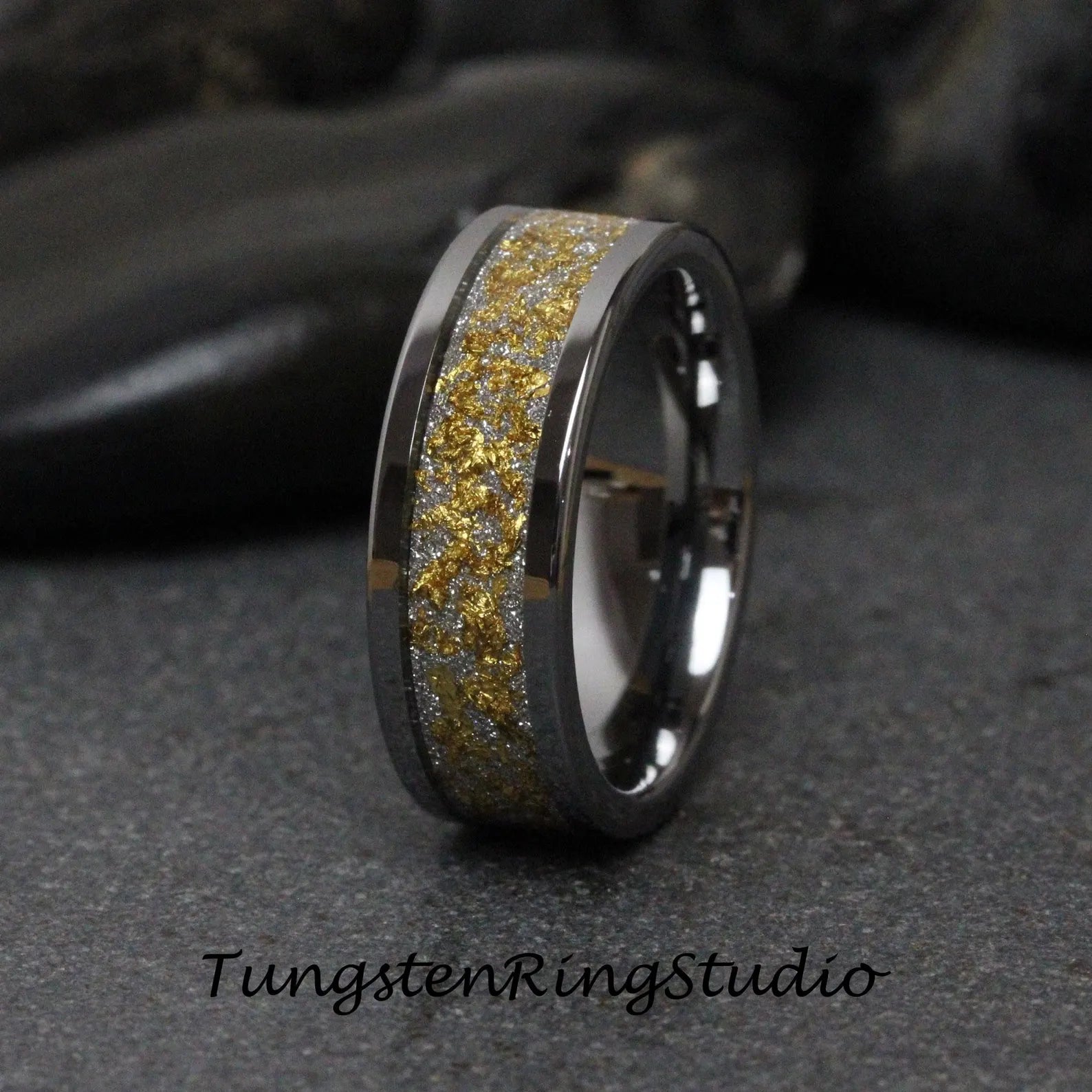 24K Gold Leaf Silver Gray Tungsten Carbide Ring 8mm – TungstenRingStudio