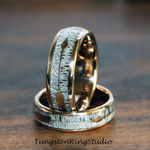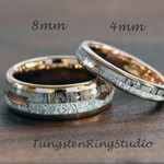 Meteorite Arrow Deer Antler Rose Gold Tungsten Ring 4mm 6mm 8mm