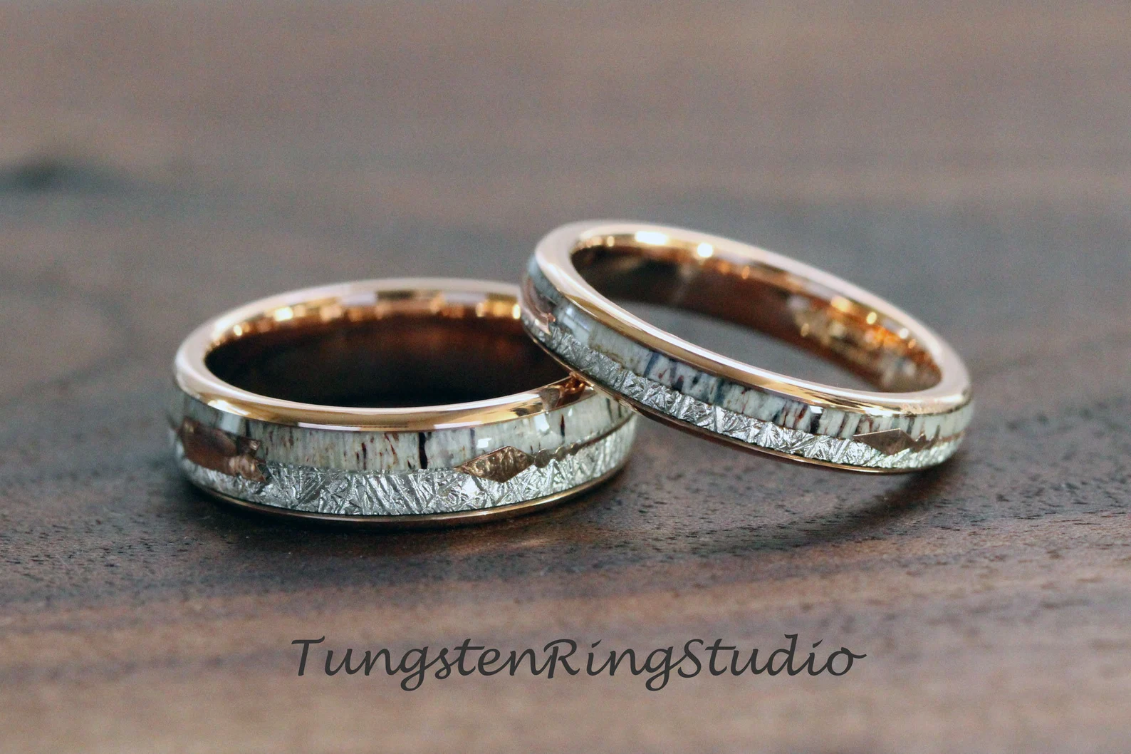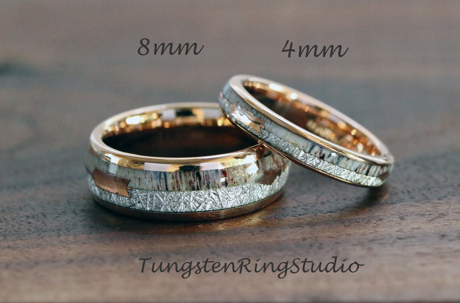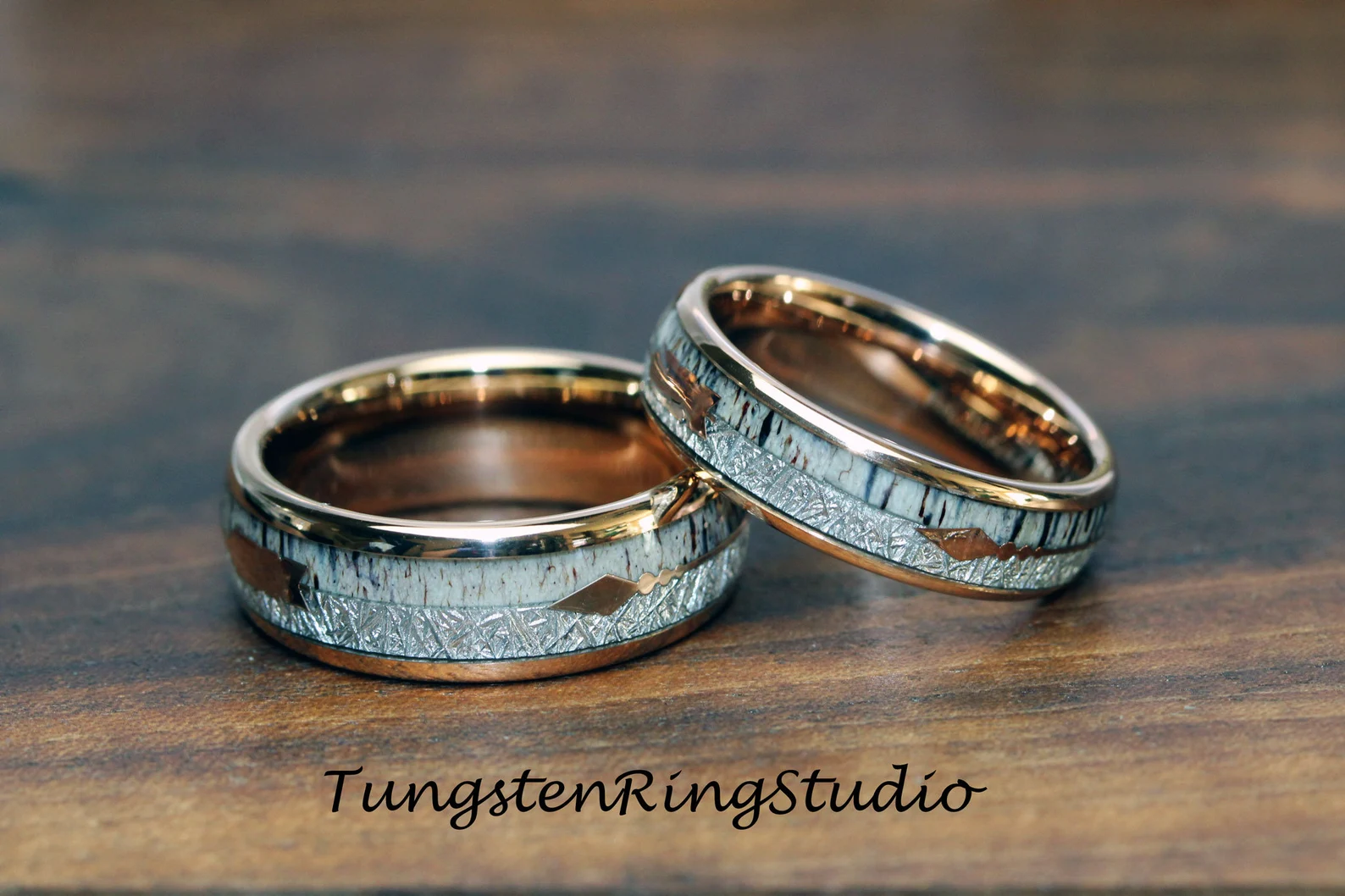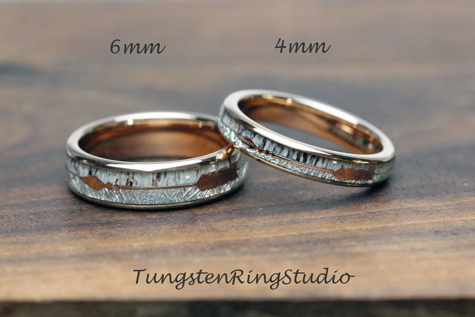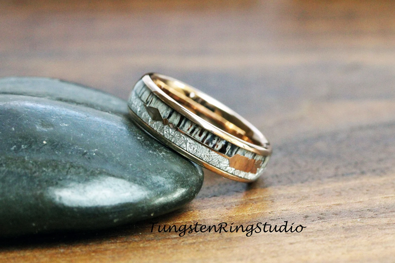 Meteorite Arrow Deer Antler Rose Gold Tungsten Ring 4mm 6mm 8mm – TungstenRingStudio