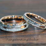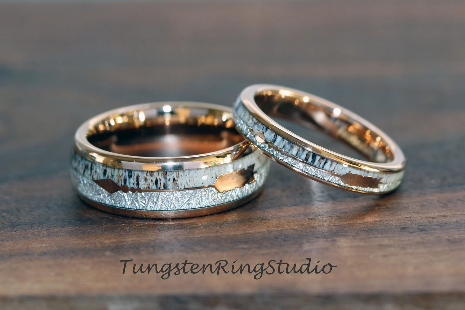 4mm 6mm 8mm Rose Gold Meteorite Arrow Deer Antler Tungsten Wedding Ring Match His and Hers Wedding Set Mens Rings Anniversary Wedding
