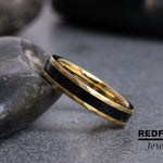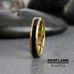 Crushed black tourmaline inlaid over gold plating tungsten ring