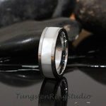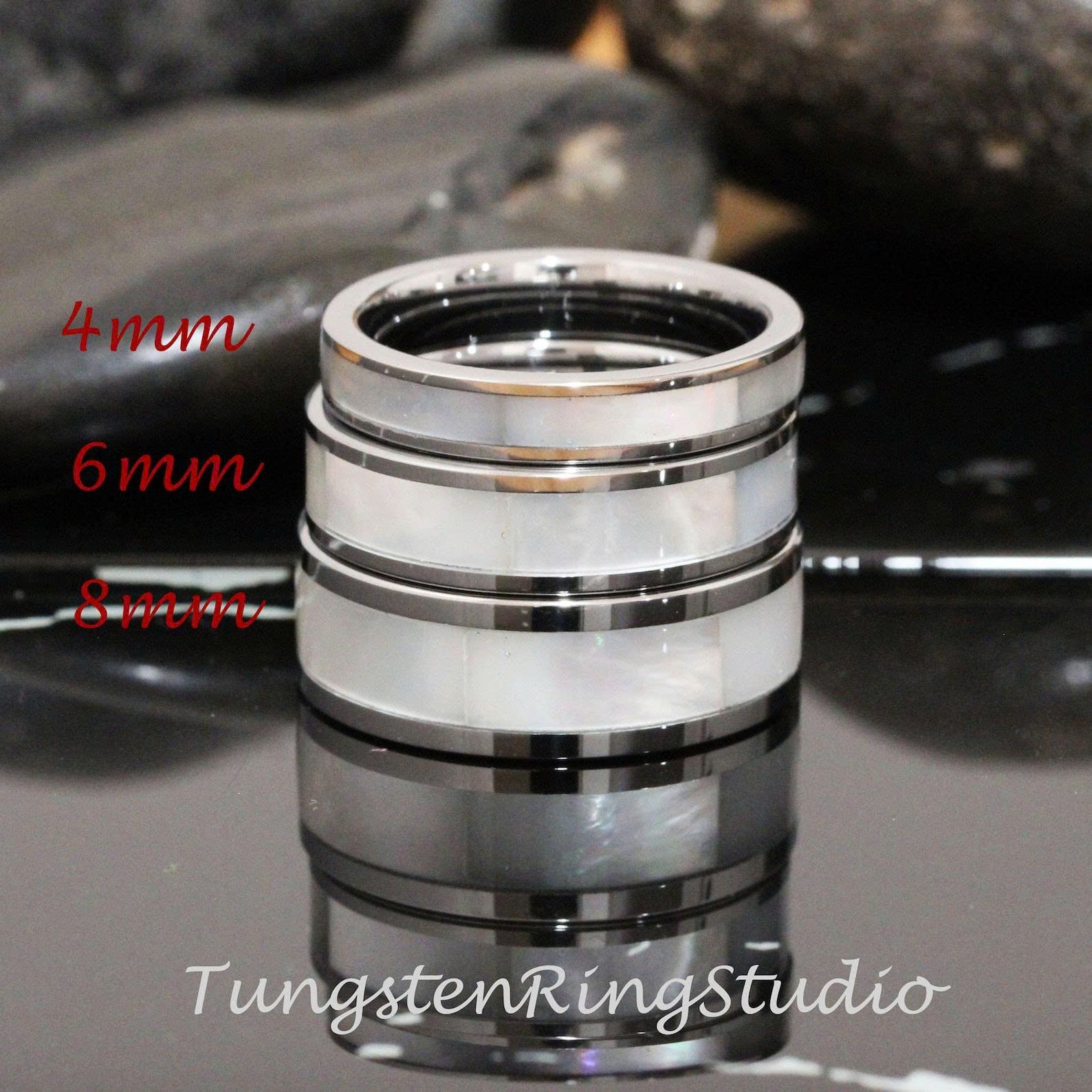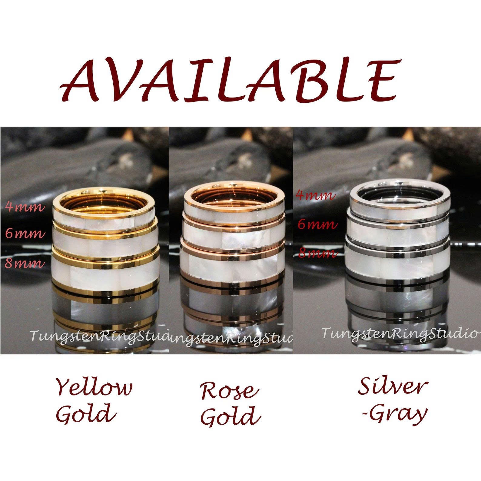 6mm Mother of Pearl Silver Gray Tungsten Wedding Ring Band 4mm 8mm Rose Gold Minimalist Stackable Wedding Ring Anniversary Ring Gift For HerCustom Orders are Welcome!