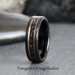 6mm Meteorite Ring, Black Hammered Rose Gold Strip Tungsten Wedding Rings Stripe Gibeon Meteorite Bands Anniversary Mans Mens Ring