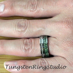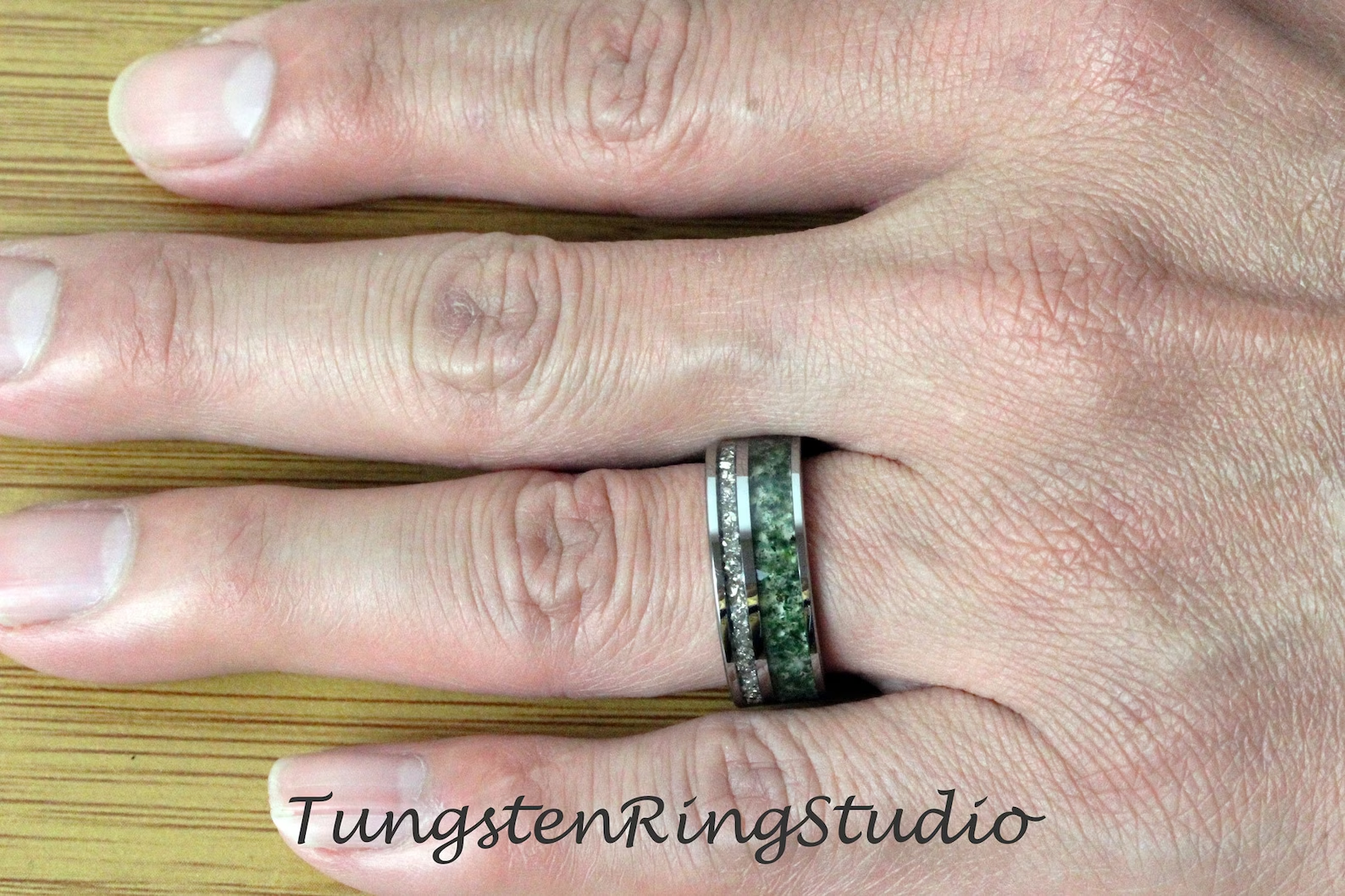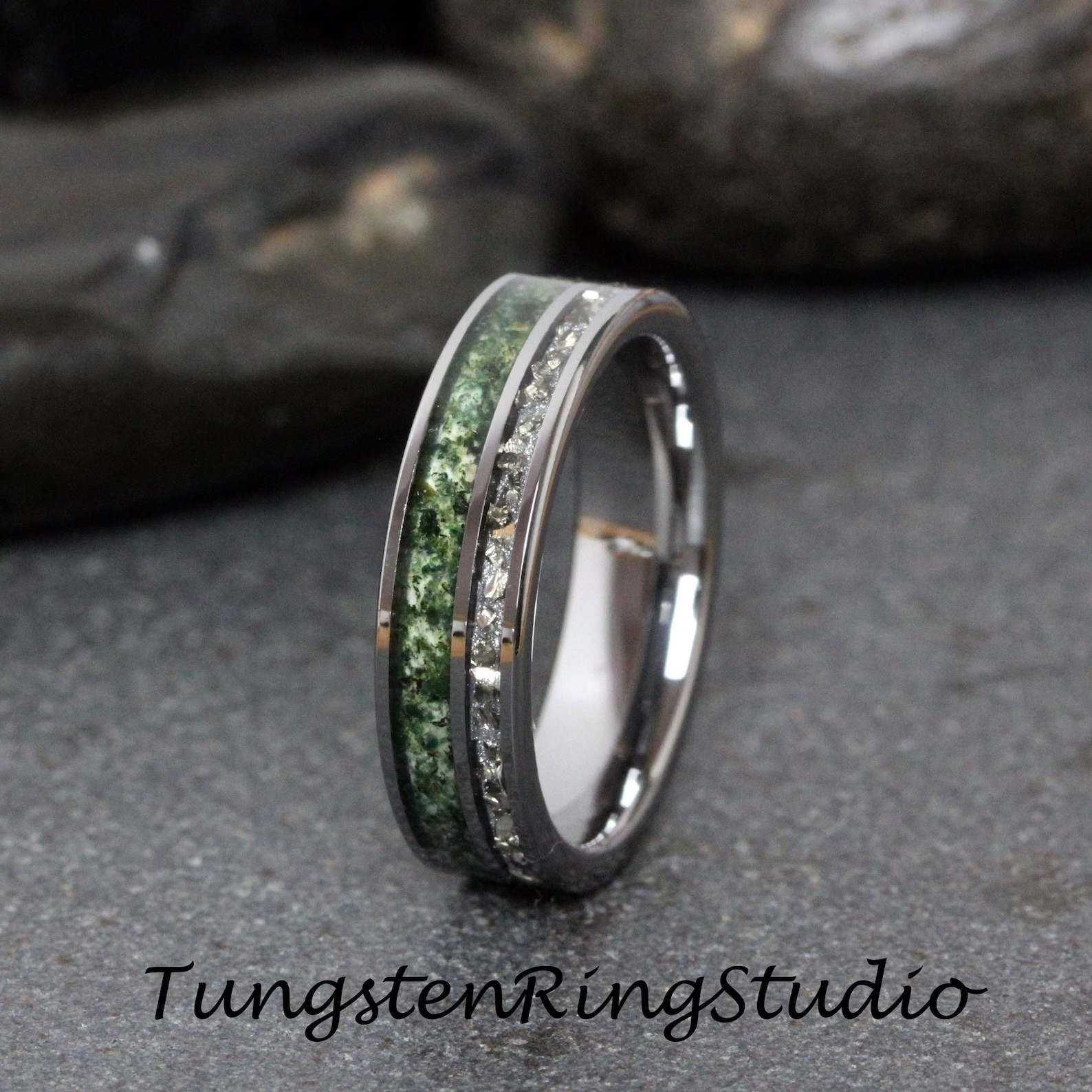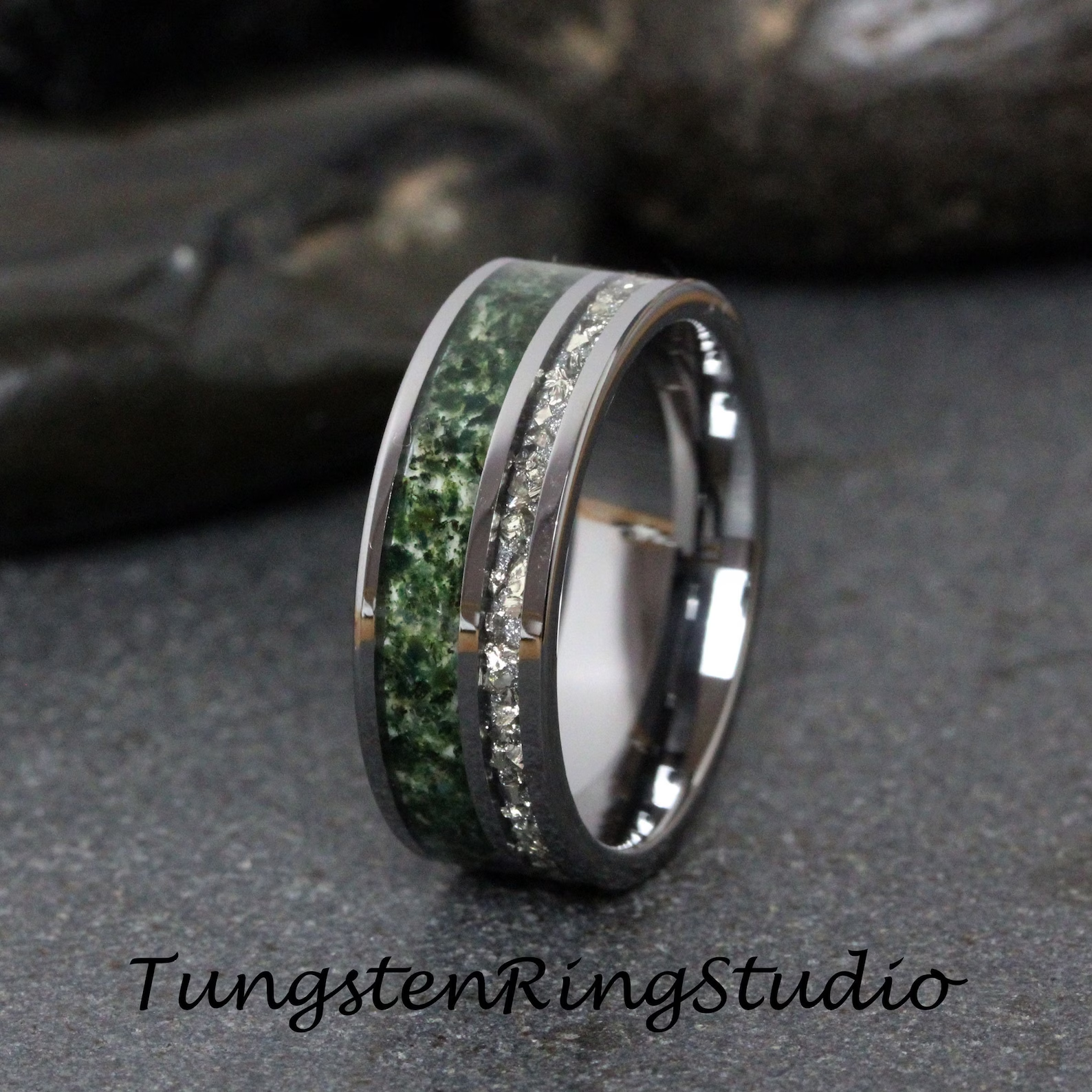 6mm Moss Agate Silver German Glass Tungsten Ring – TungstenRingStudio