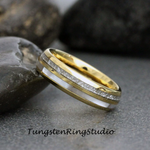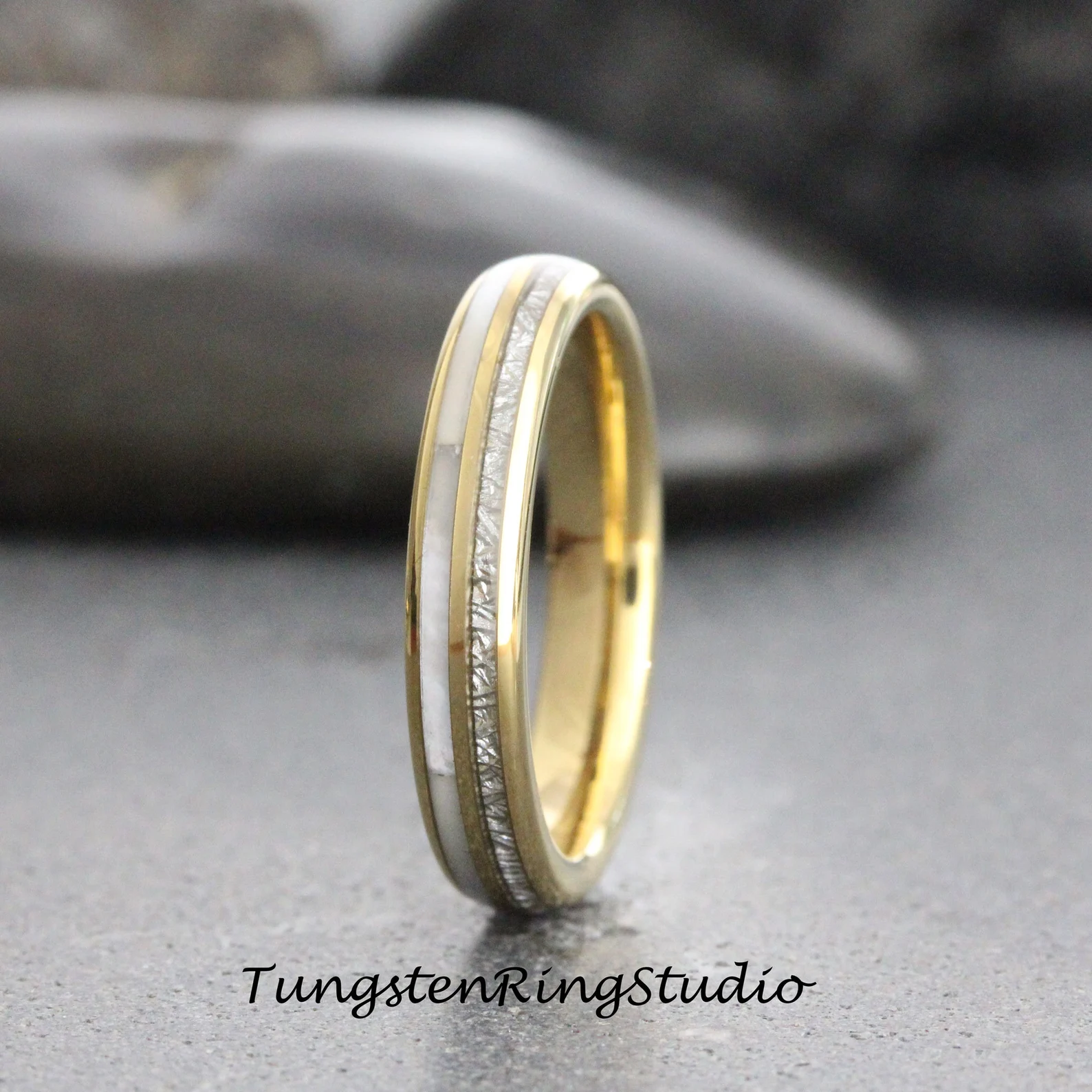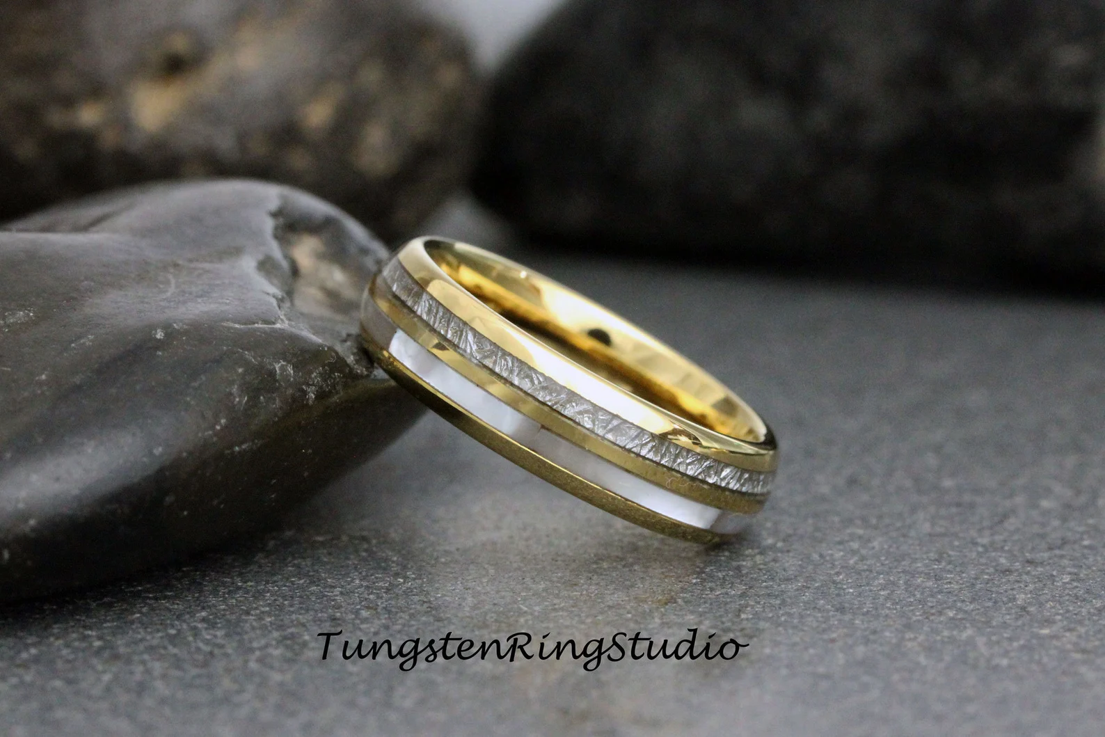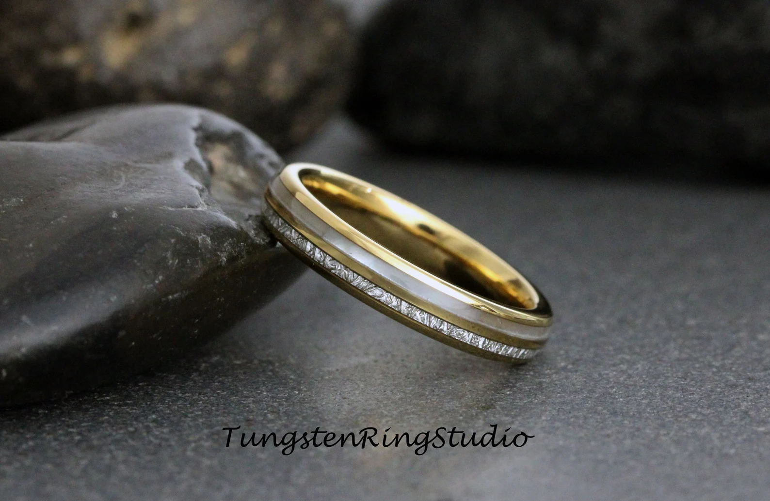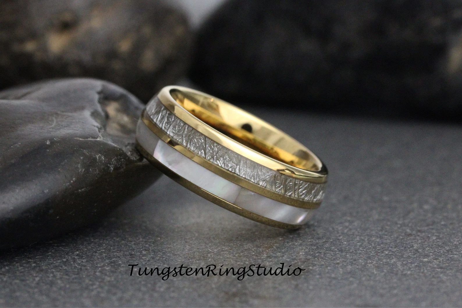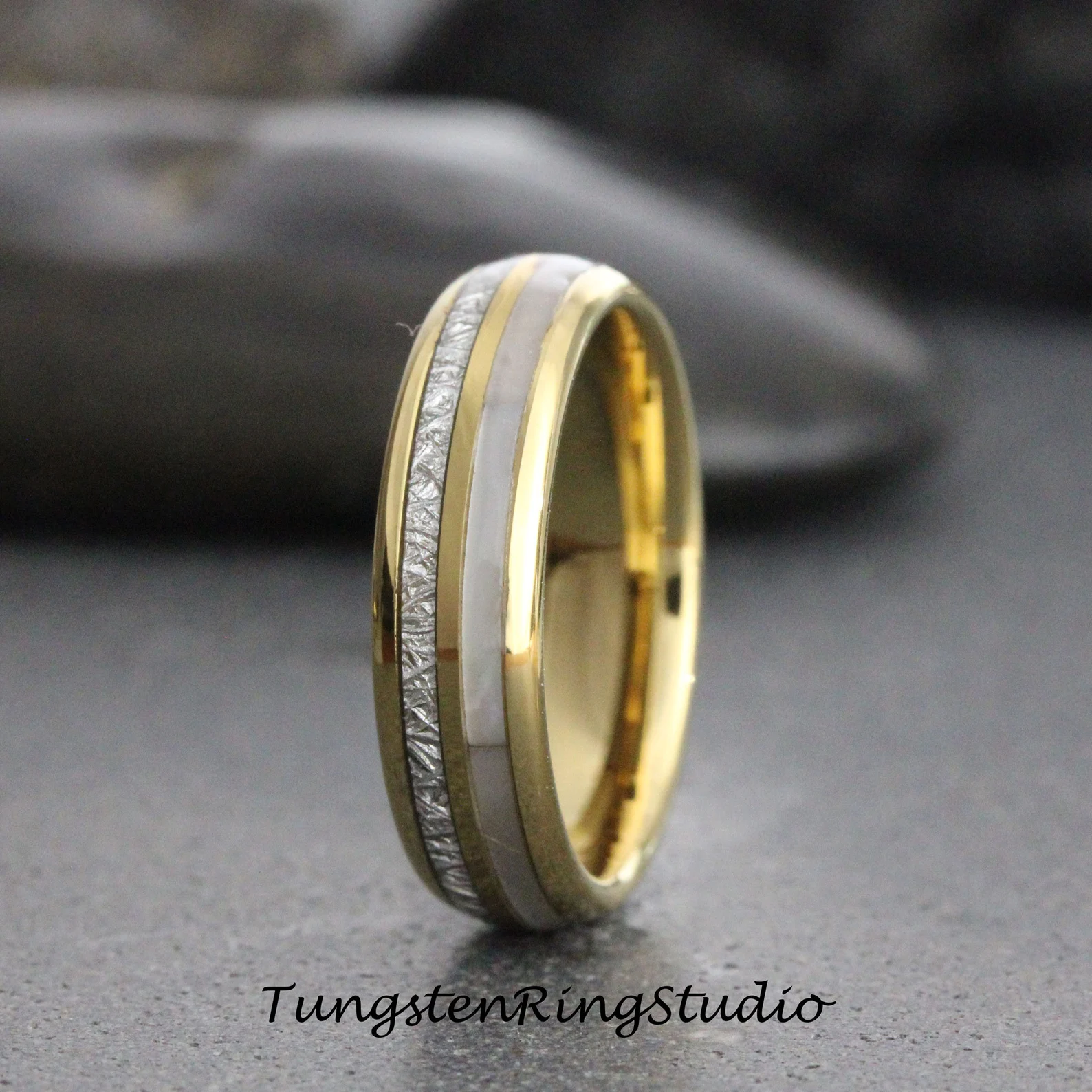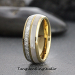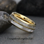 6mm Mother of Pearl Meteorite Yellow Gold Tungsten Ring – TungstenRingStudio