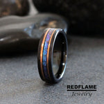 6mm Black Hammer Rose Gold Stripes Tungsten Lab-created Alexandrite Wedding Ring