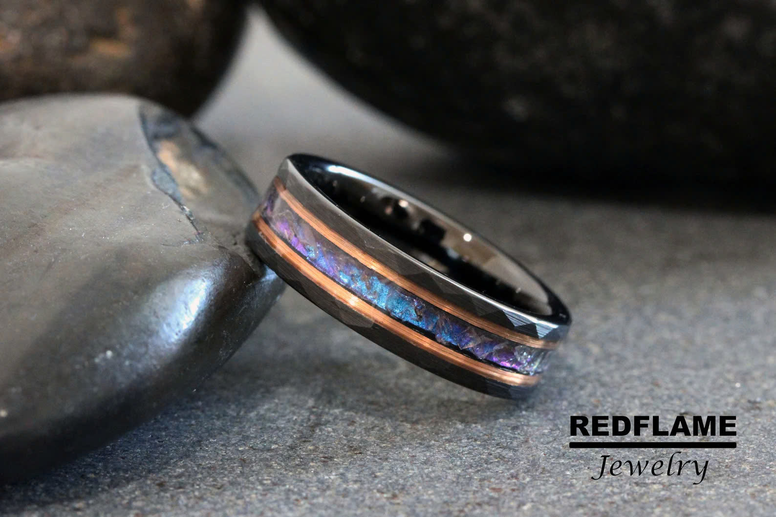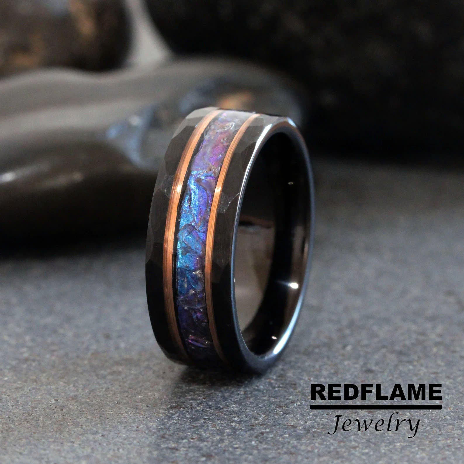 Alexandrite Crushed Hammered Tungsten Ring- Custom Order – TungstenRingStudio