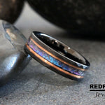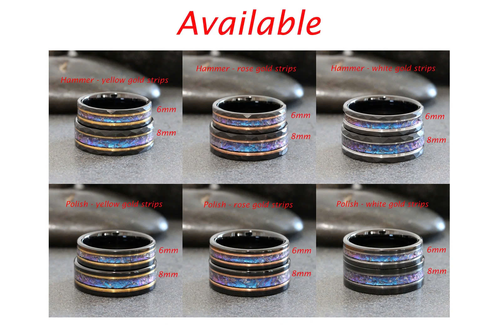 6mm Rose Gold Hammer Alexandrite Crushed Wedding Ring Black 8mm Stripes Accent Changing Color Tungsten Mens Custom Order Blue Purple Stone
