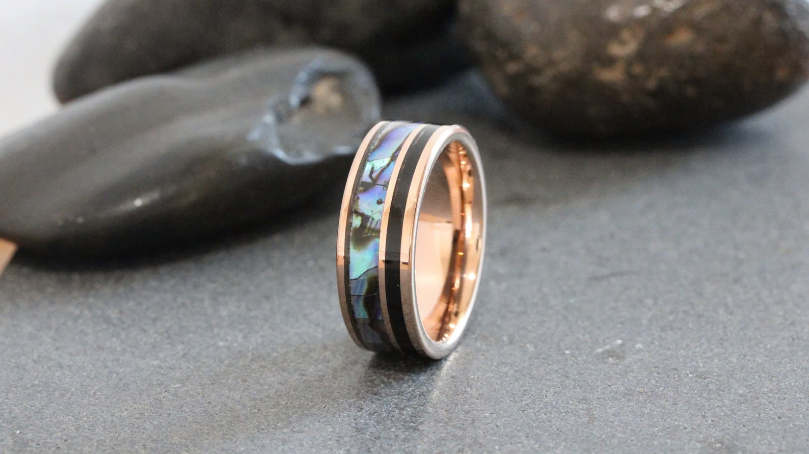 Abalone Black Rose Gold Tungsten Carbide Rings - Custom Order – TungstenRingStudio