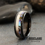 Abalone Deer Antler Wedding Ring Black Band Blue Green Purple Abalone Wedding Tungsten Wedding Mens Ring Custom Order Offset Elk Ring