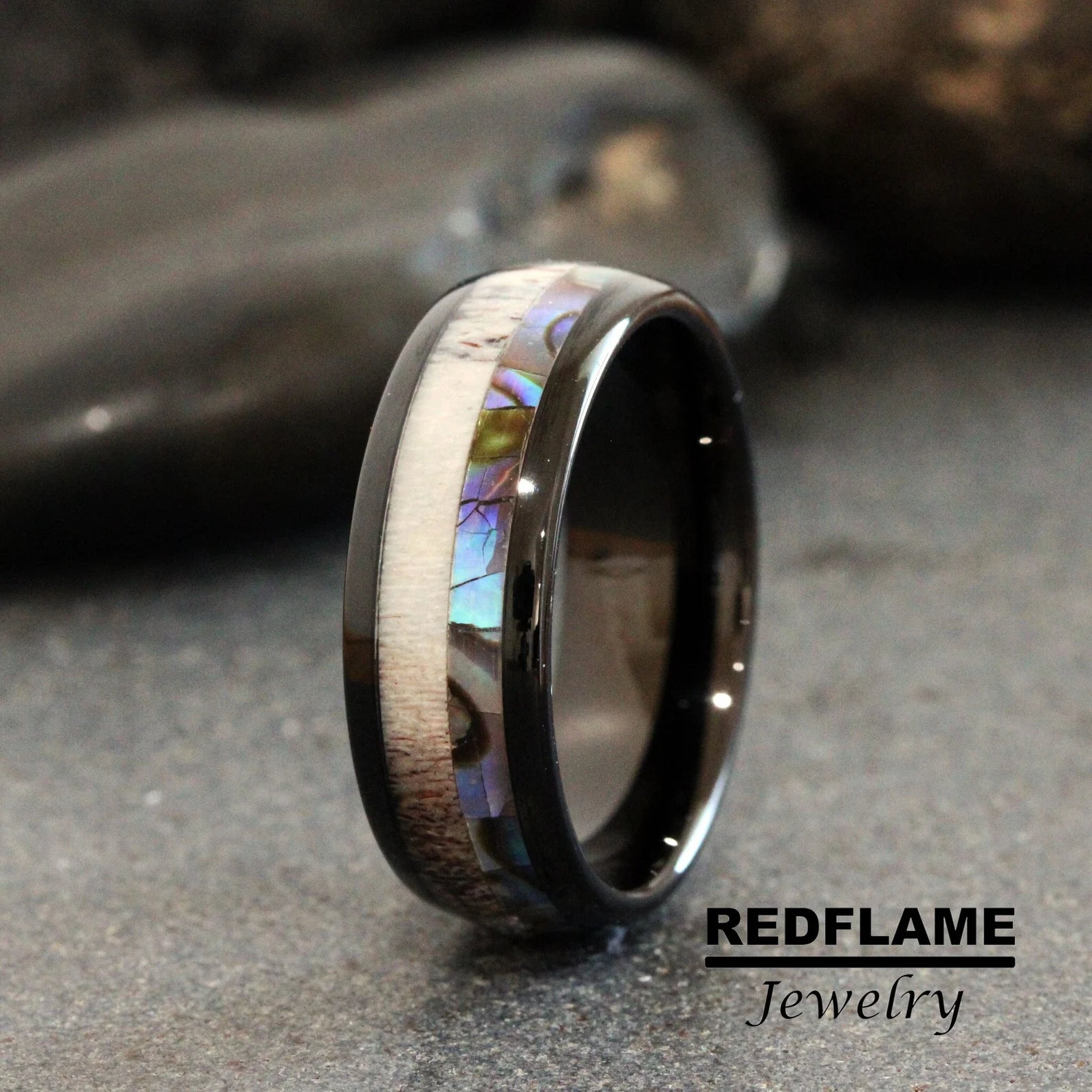 Abalone Deer Antler Tungsten Carbide Ring- Custom Order – TungstenRingStudio