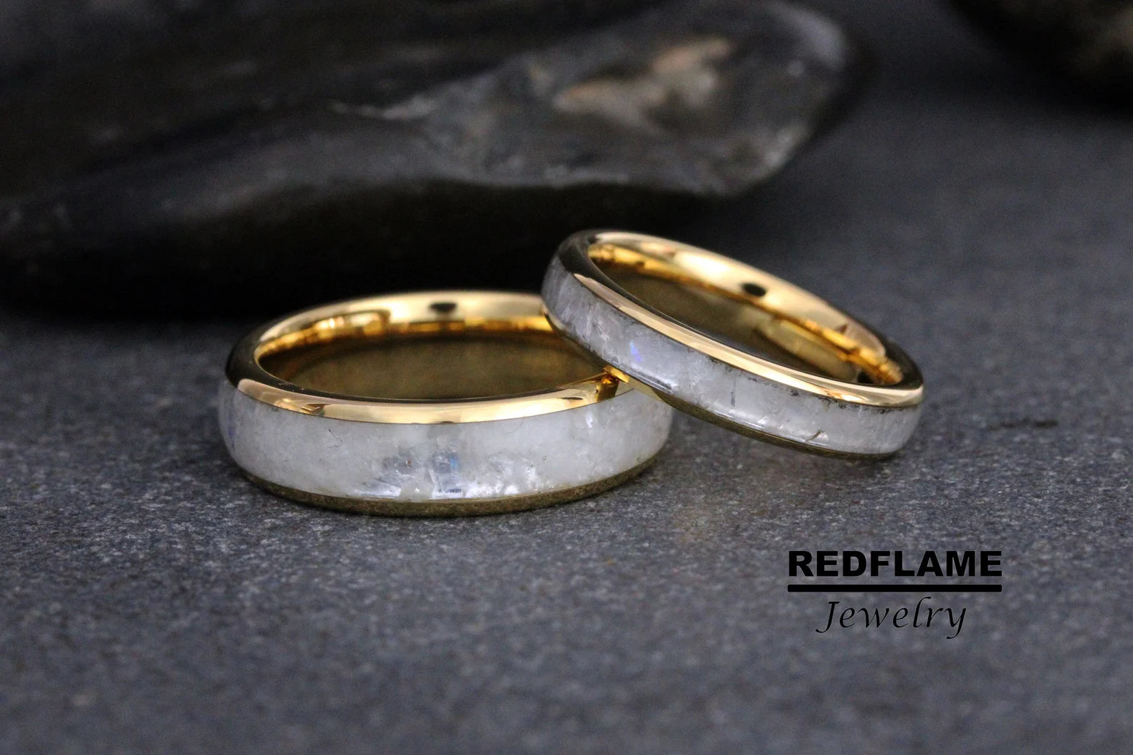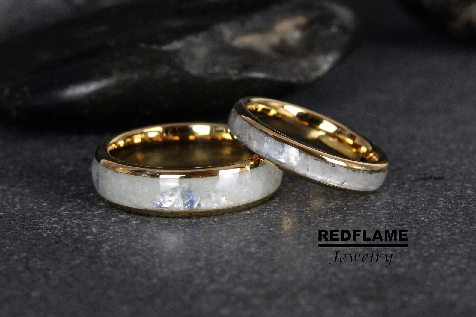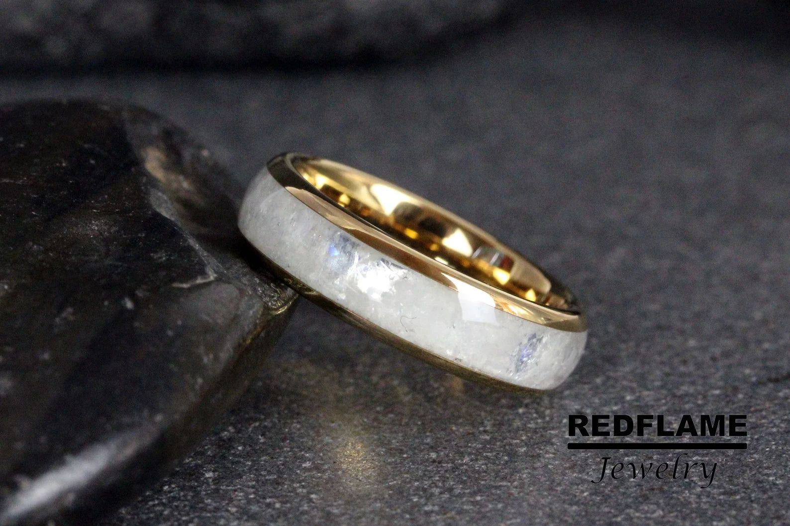 Rainbow Moonstone Gold Tungsten Ring- Custom Order – TungstenRingStudio