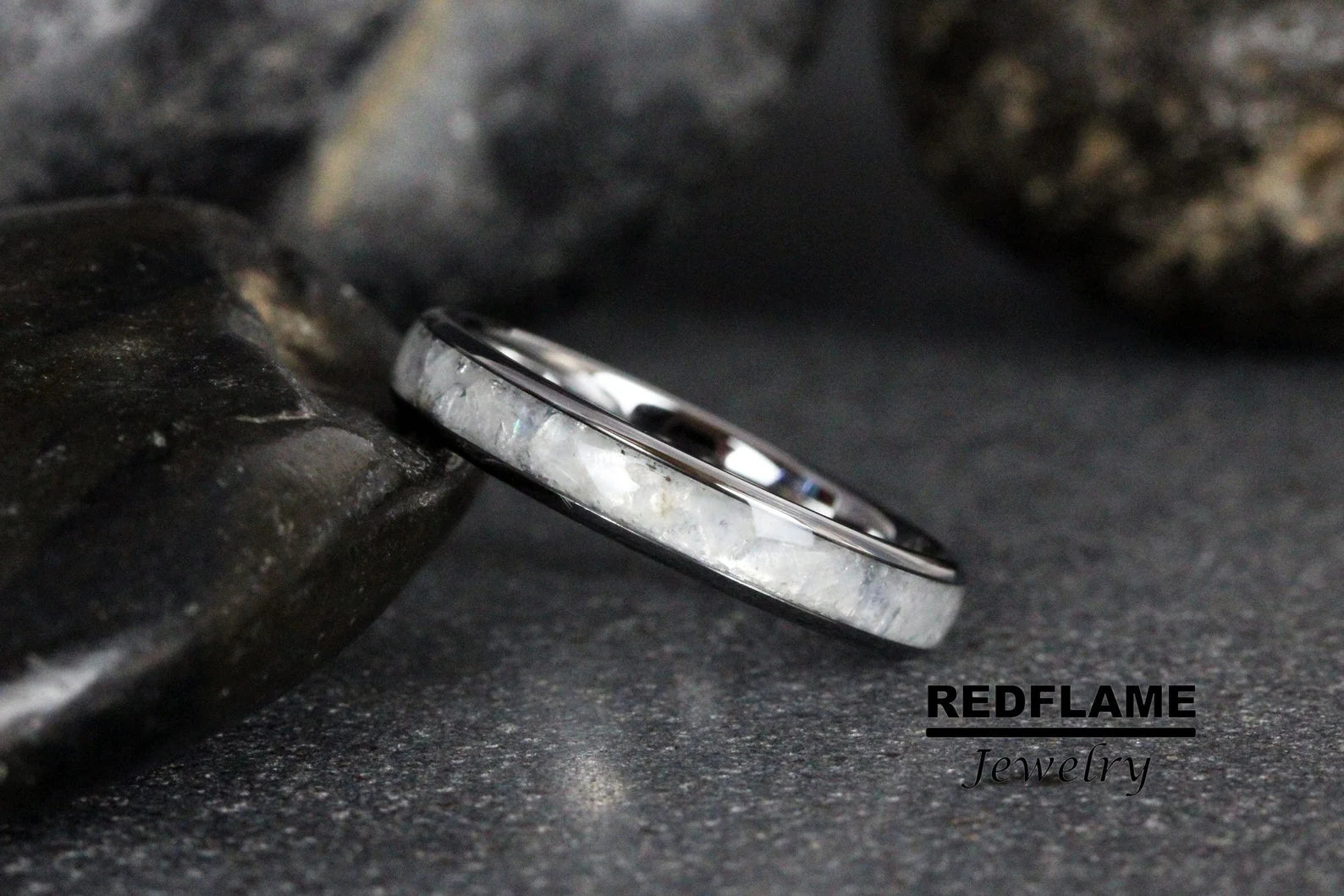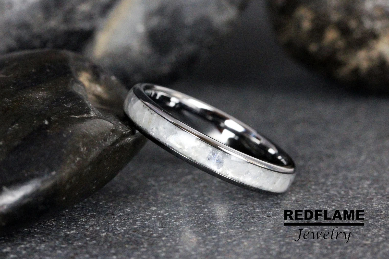 Rainbow Moonstone Tungsten Ring- Custom Order – TungstenRingStudio