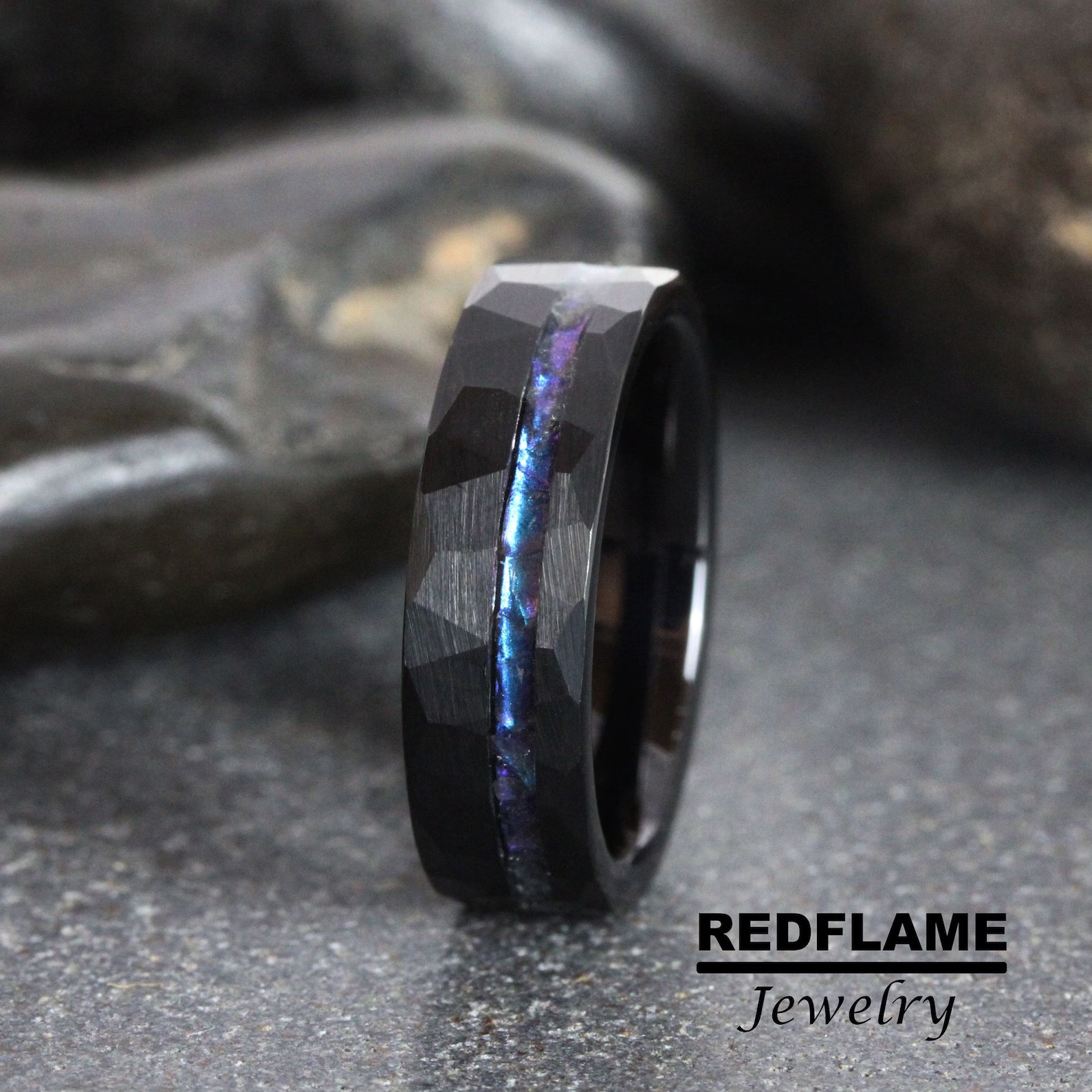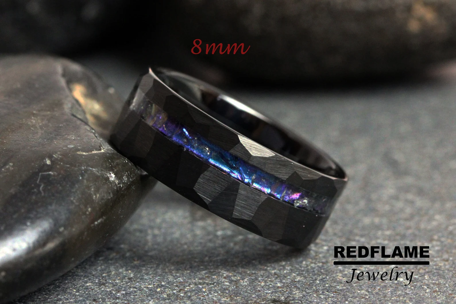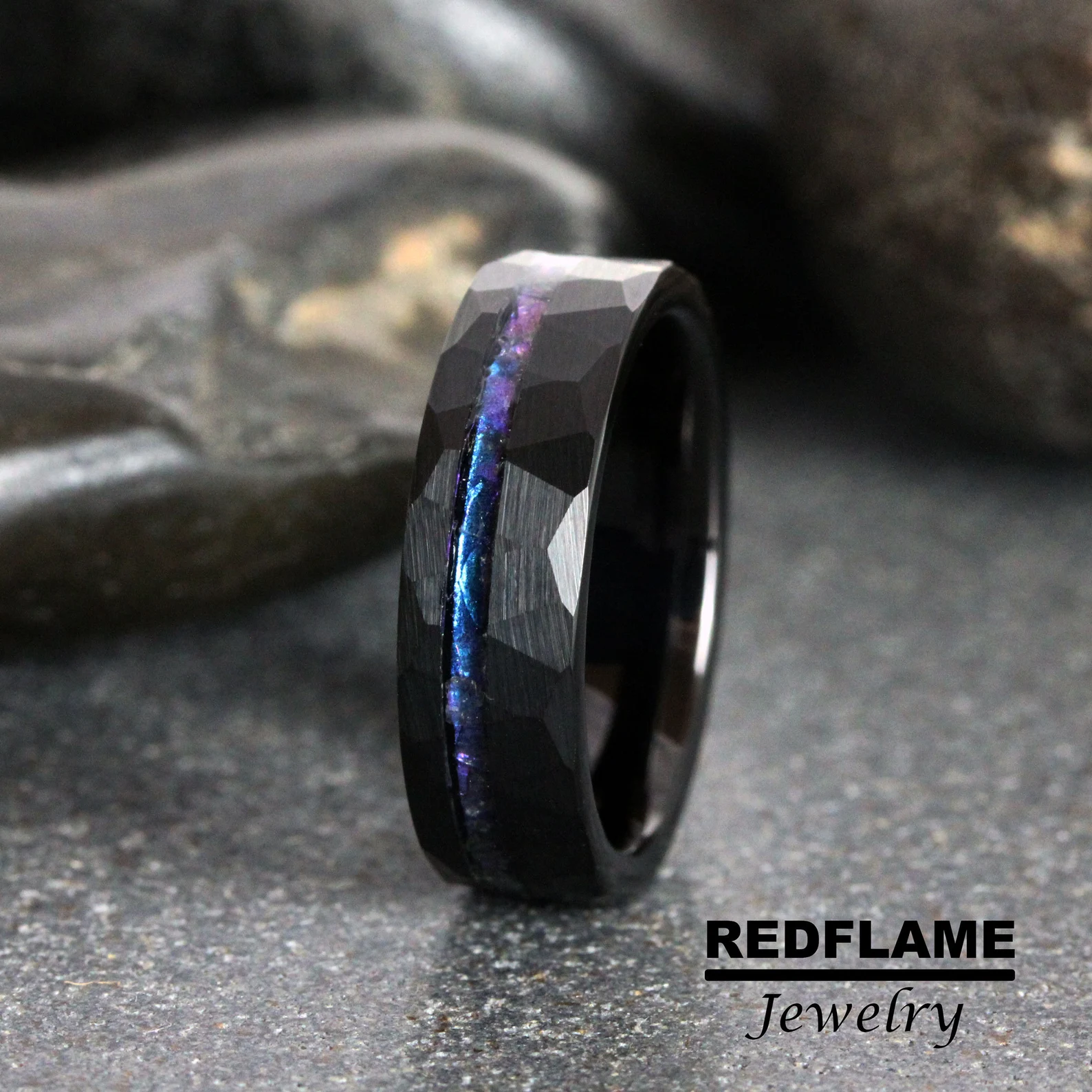 Alexandrite Crushed Wedding Ring, Black Hammer Changing Color Ring, Rose Gold Black Yellow Silver Gray Tungsten Wedding Ring, Mens Ring