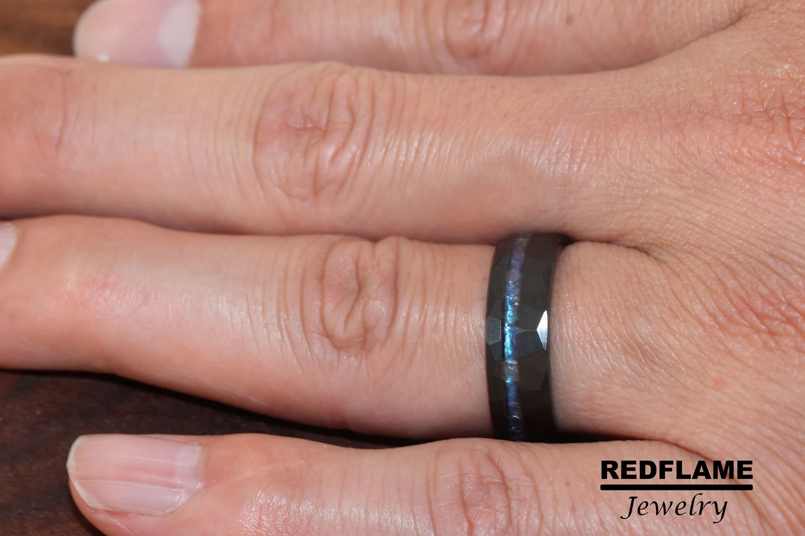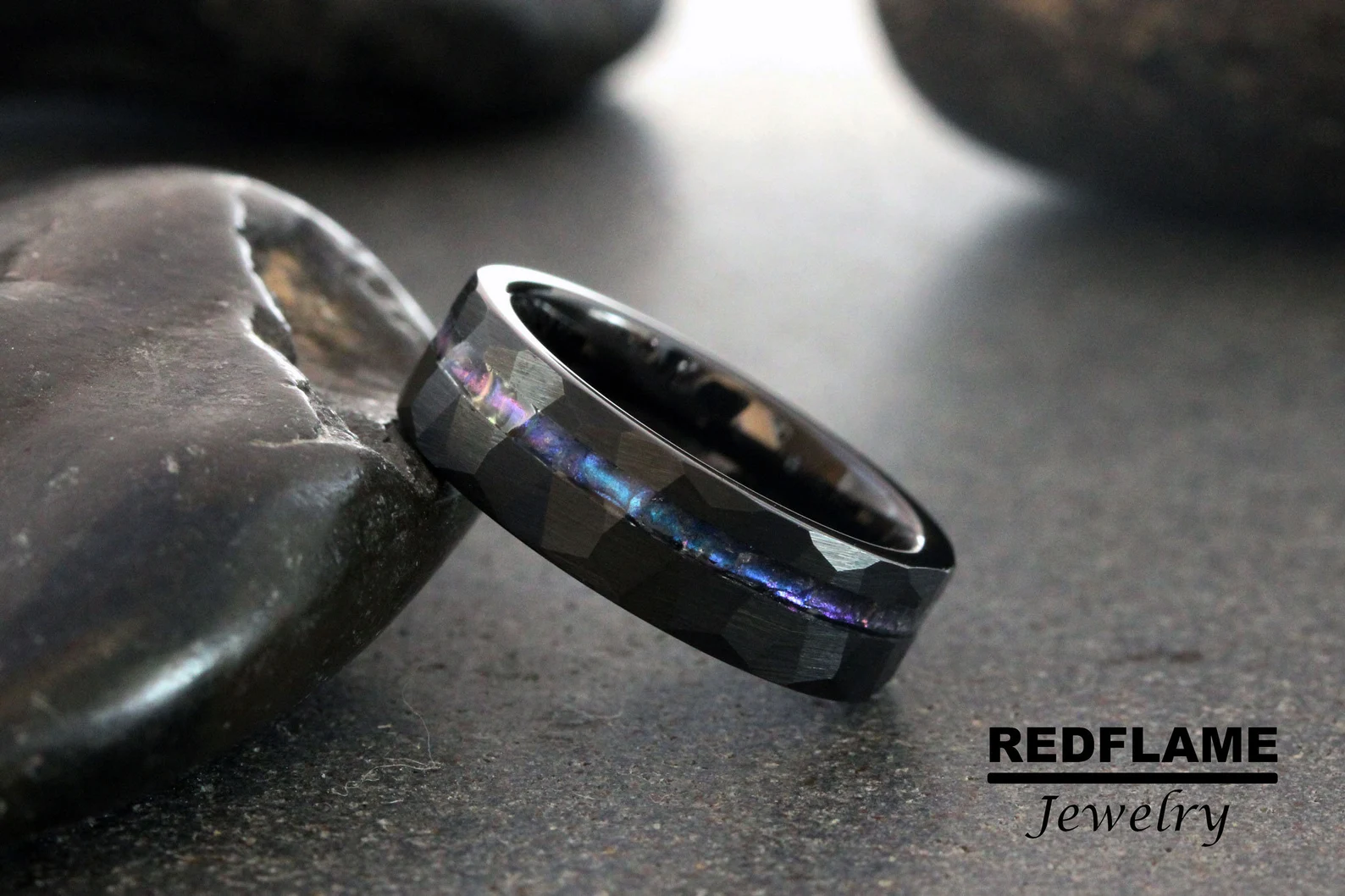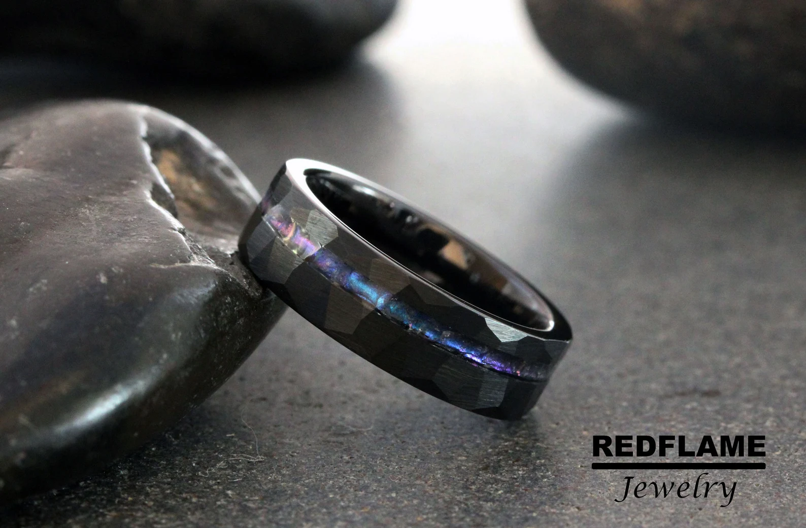 Alexandrite Crushed Wedding Ring, Black Hammer Changing Color Ring, Rose Gold Black Yellow Silver Gray Tungsten Wedding Ring, Mens Ring