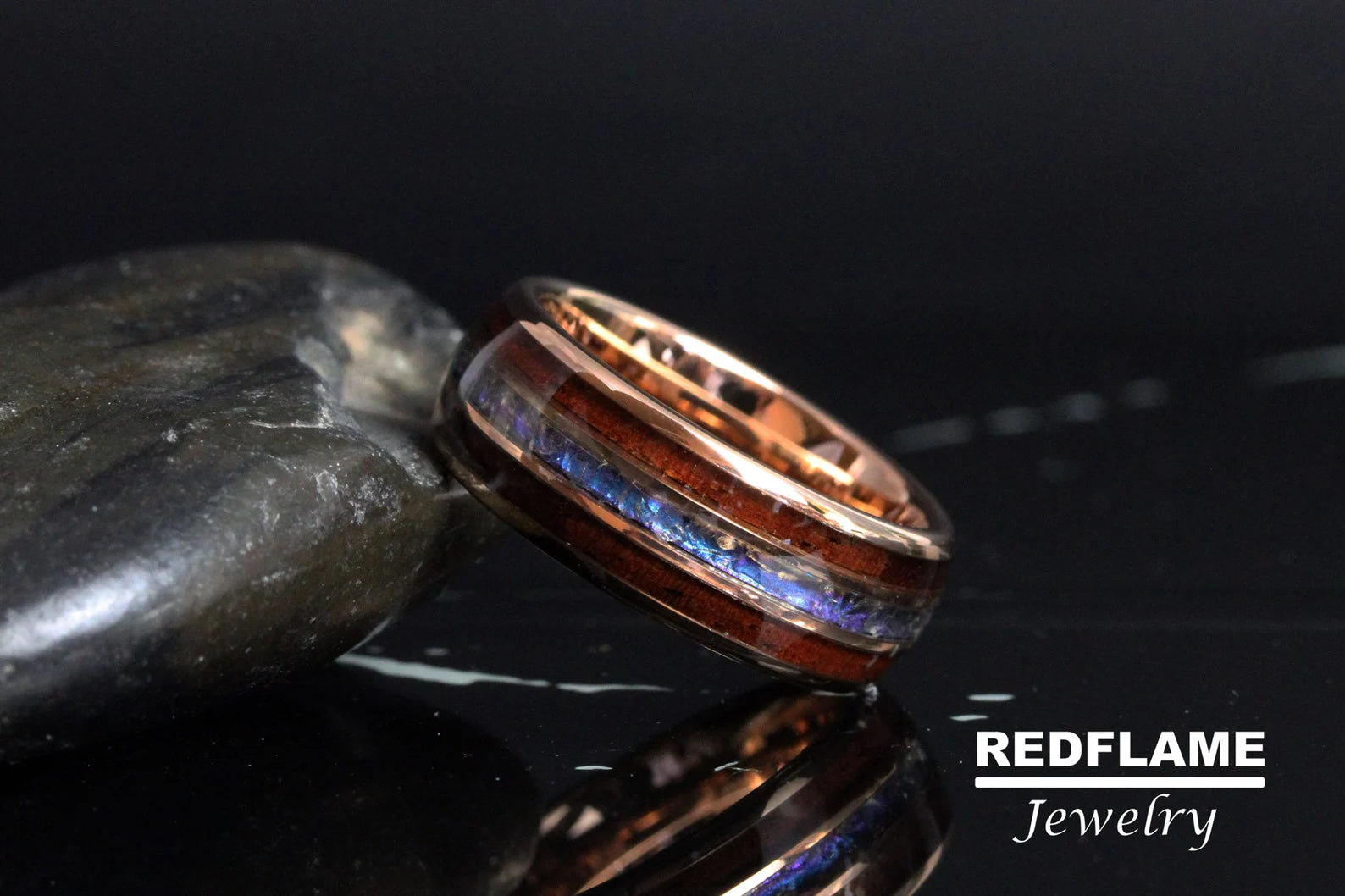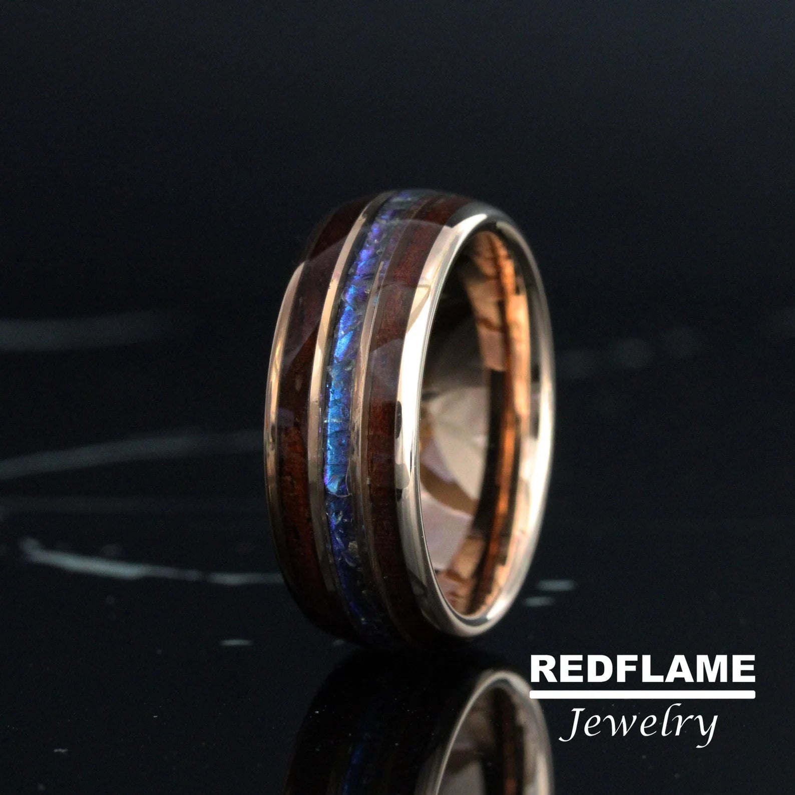 Alexandrite Dark Curly Hawaii Koa Wood Tungsten Ring- Custom Order – TungstenRingStudio