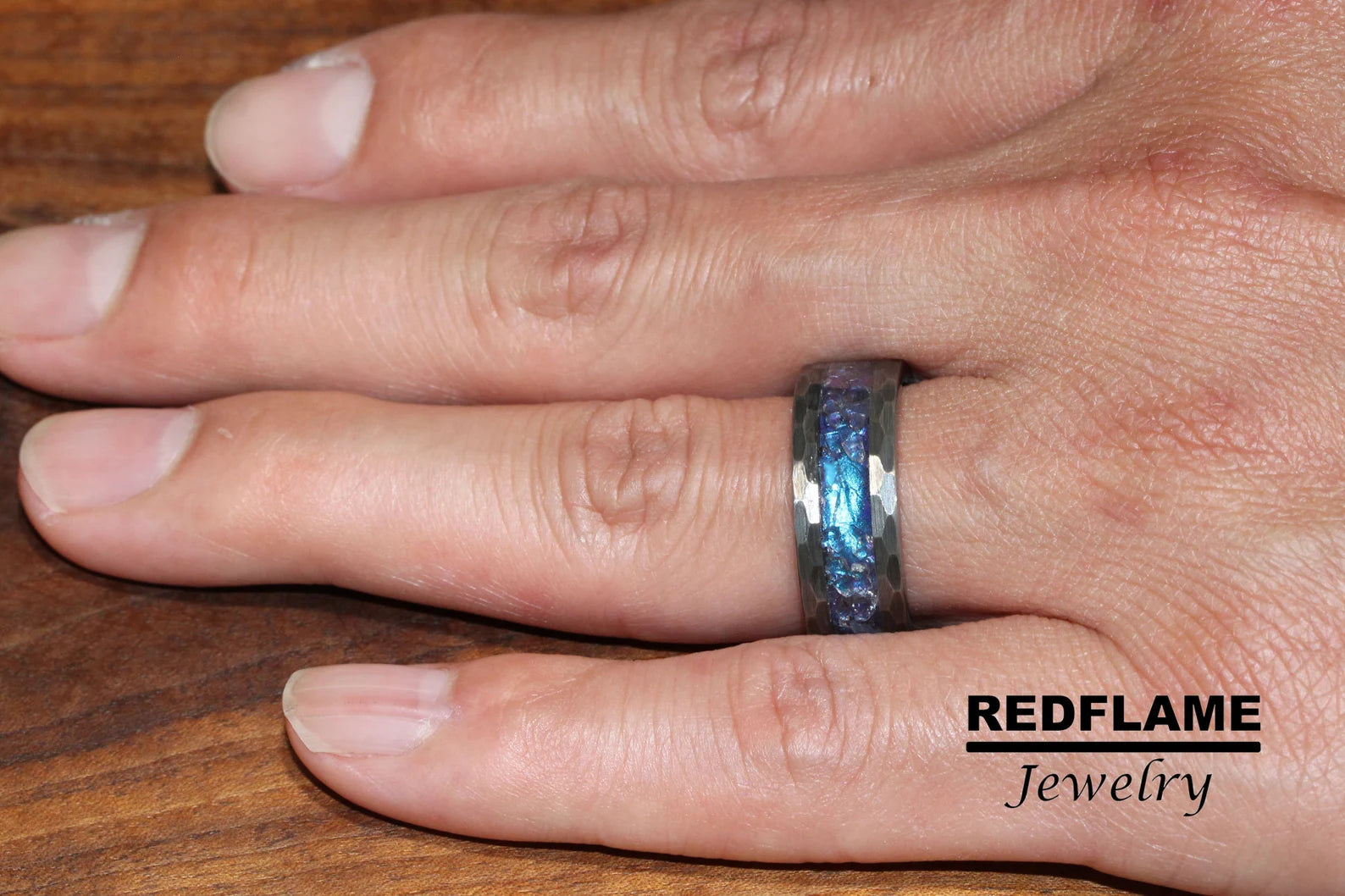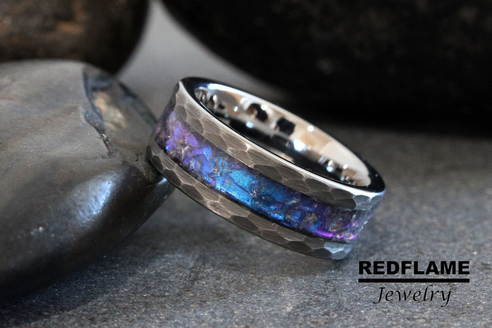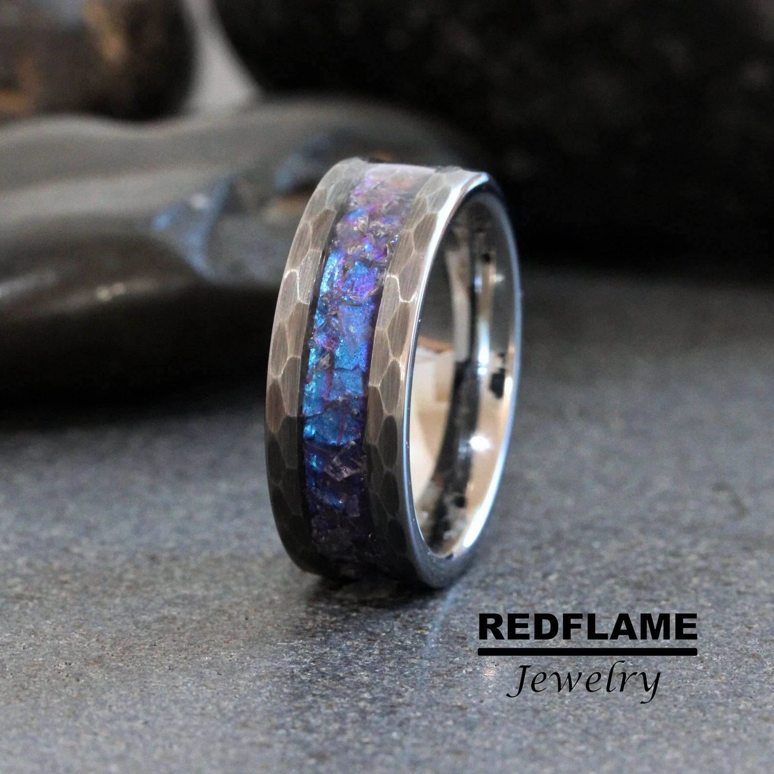 Alexandrite Crushed Hammered Tungsten Ring- Custom Order – TungstenRingStudio