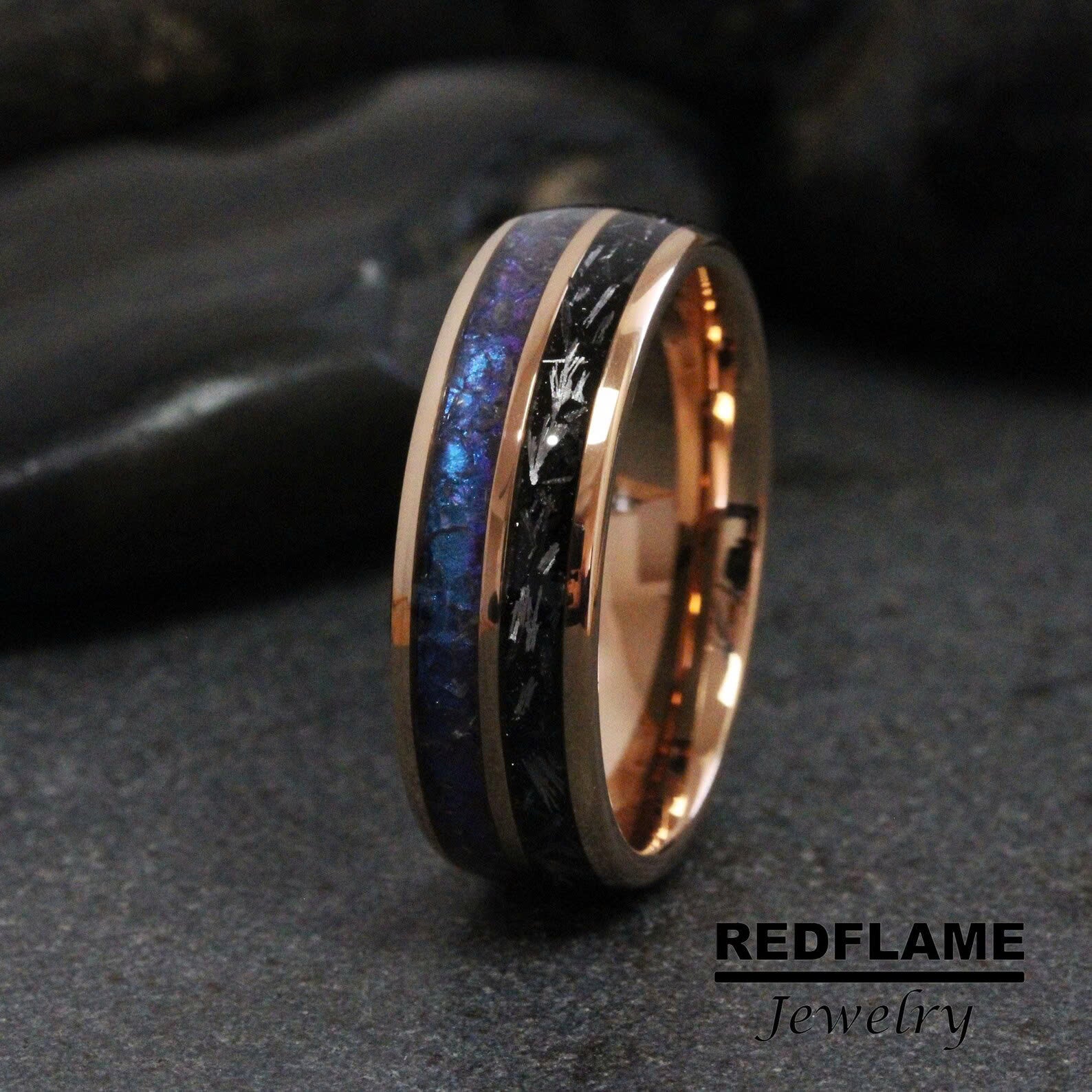 Alexandrite Gibeon Meteorite Rose Gold Tungsten Carbide Rings - Custom – TungstenRingStudio