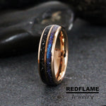 Combo Double Inlay: Lab-Created Alexandrite Crushed and Gibeon Meteorite Shaving Inlaid over Gold Plating Tungsten Wedding Ring