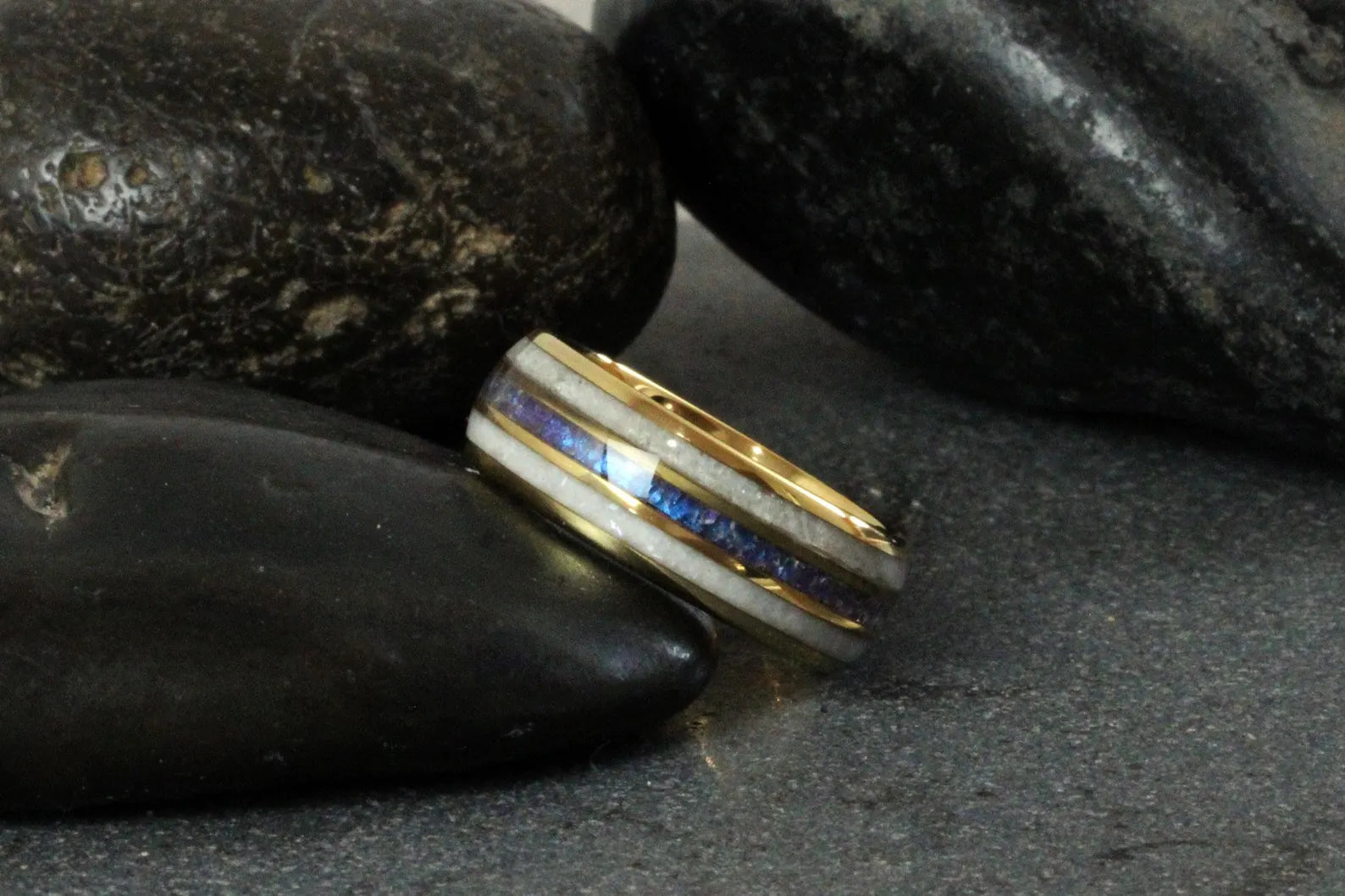 Please note: the materials have their own unique colors and patterns. Each ring is one-of-a-kind.