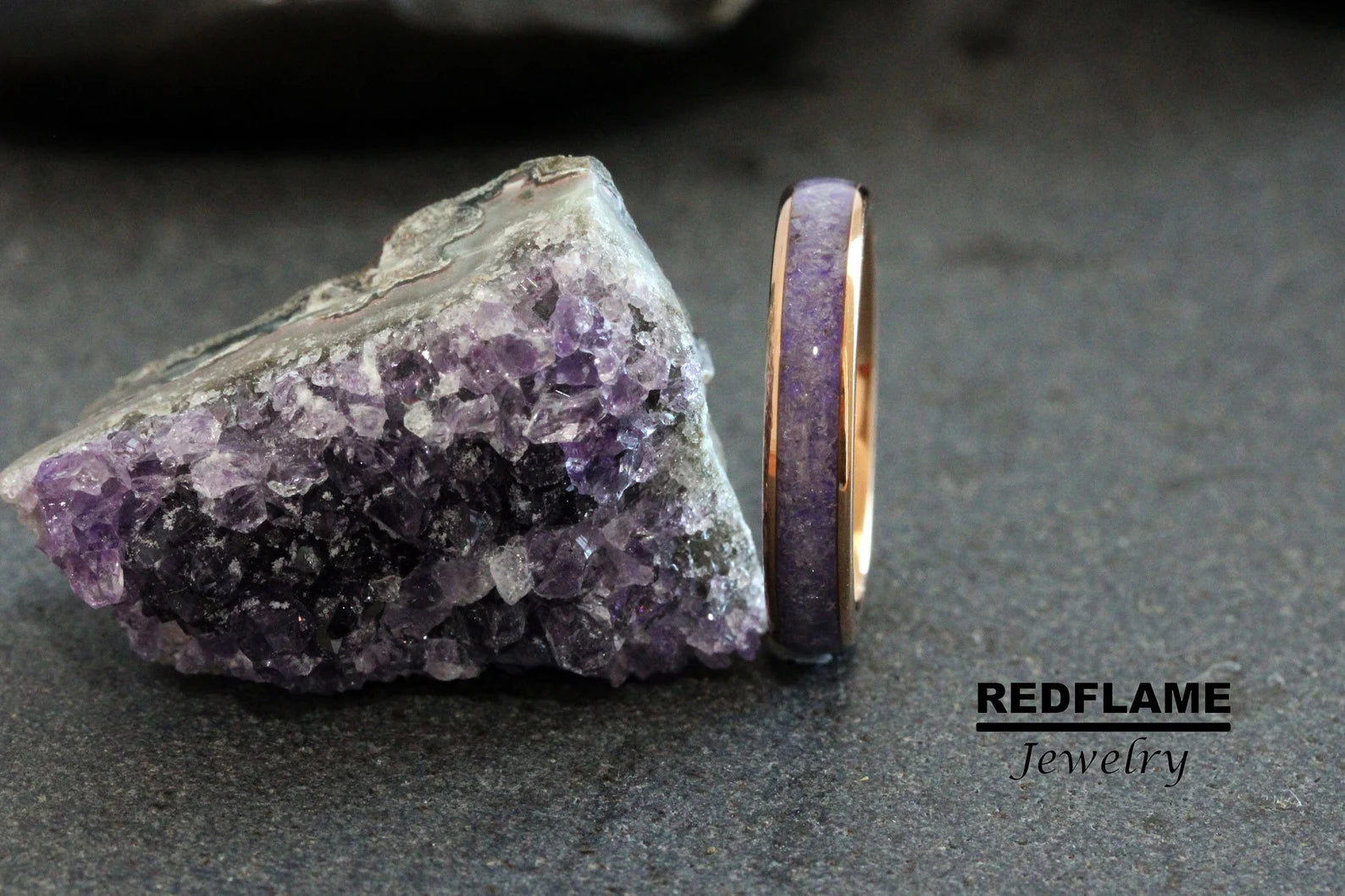 Amethyst Crushed Tungsten Ring- Custom Order – TungstenRingStudio