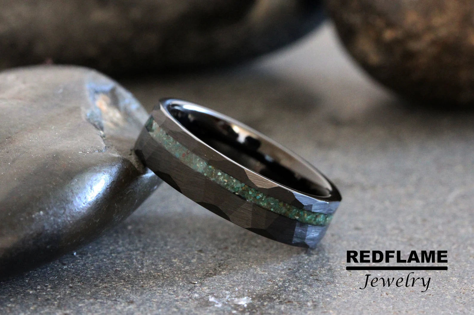 Natural Turquoise Hammered Tungsten Ring- Custom Order – TungstenRingStudio