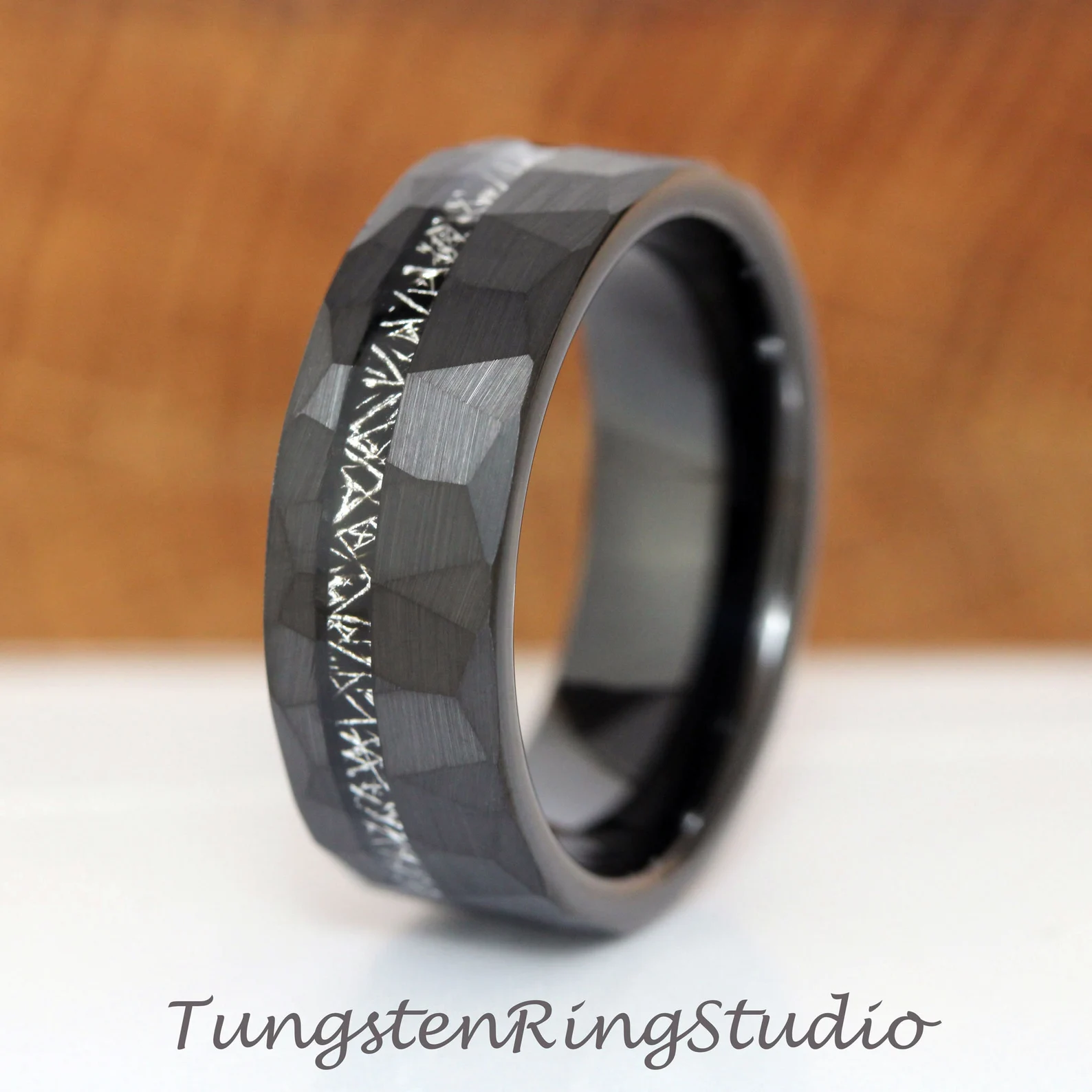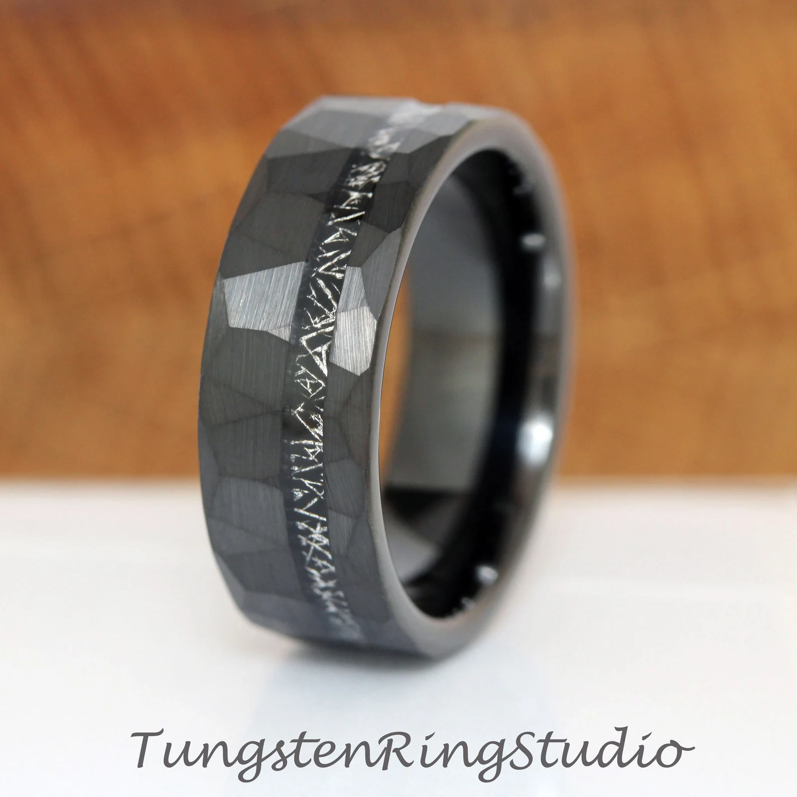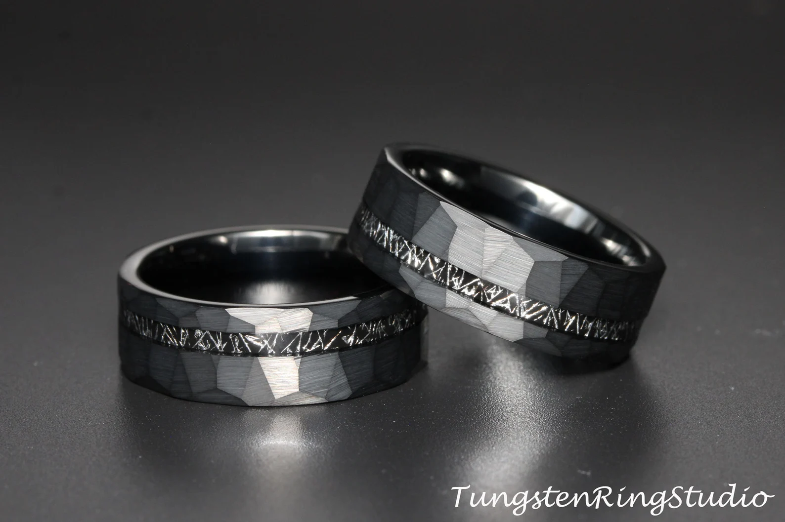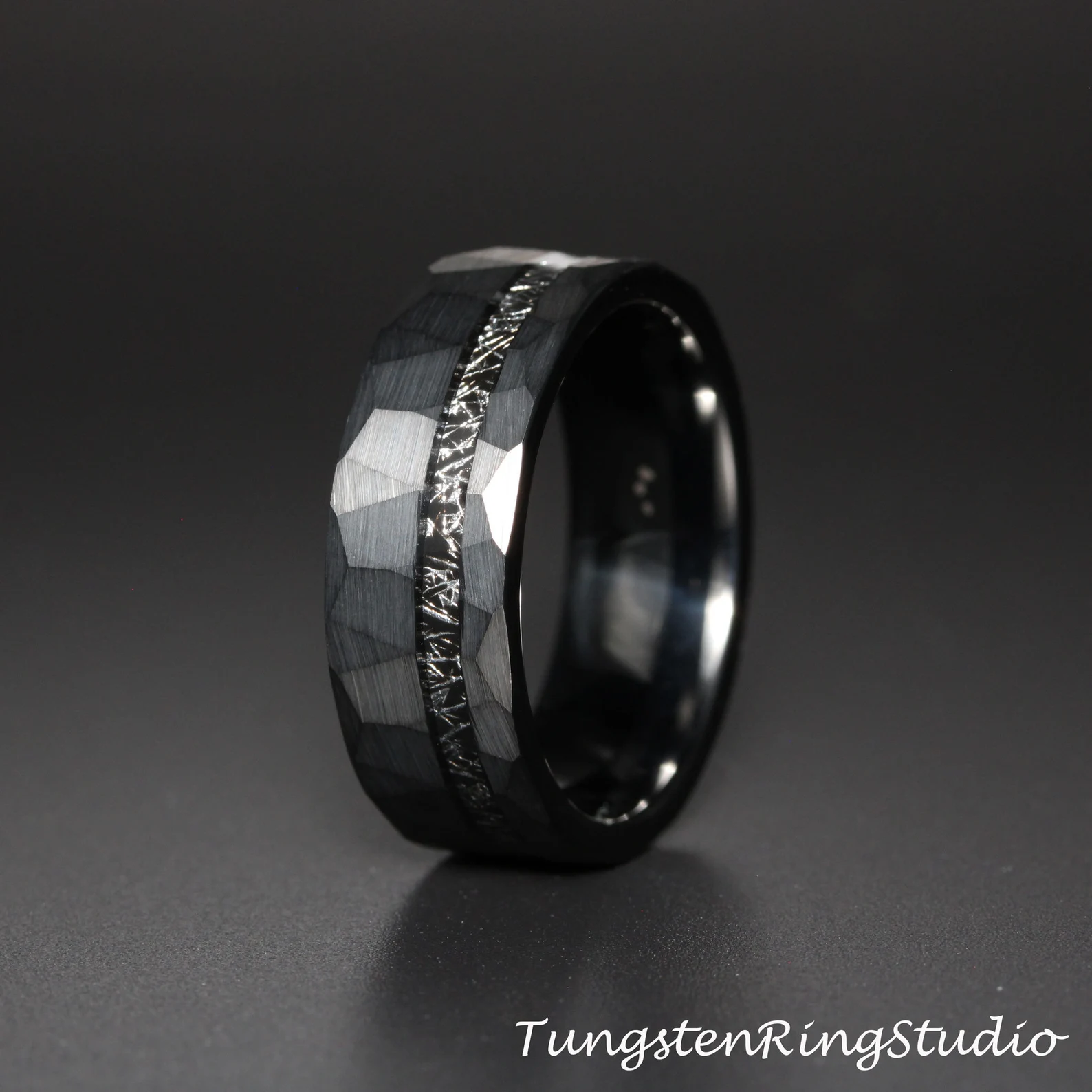 Meteorite Hammered Black Tungsten Ring – TungstenRingStudio
