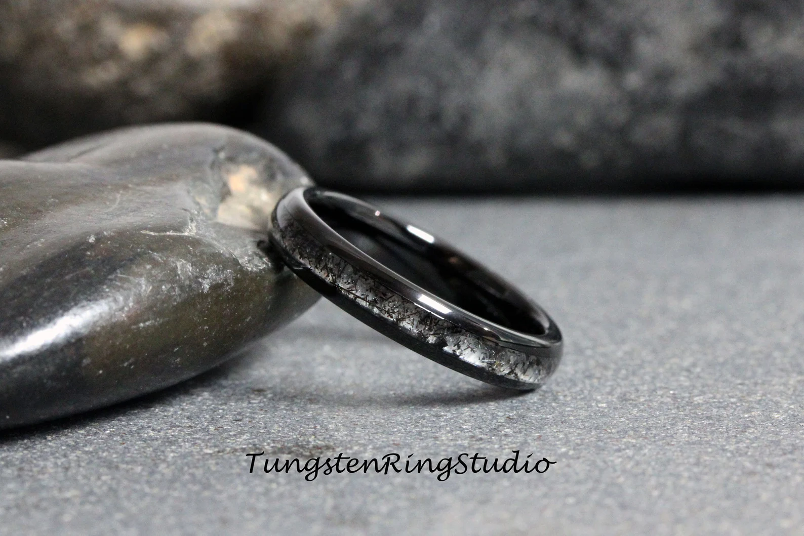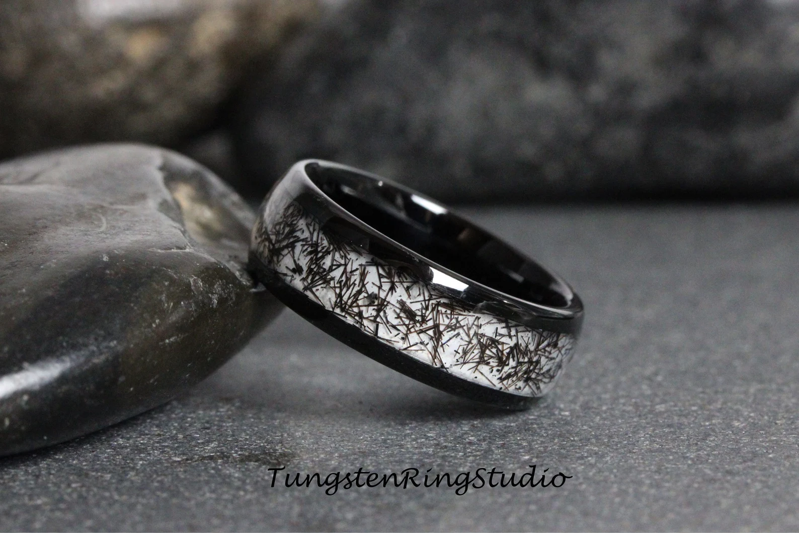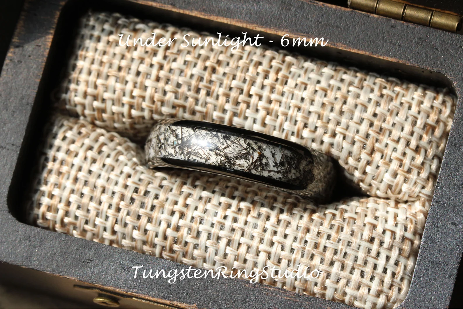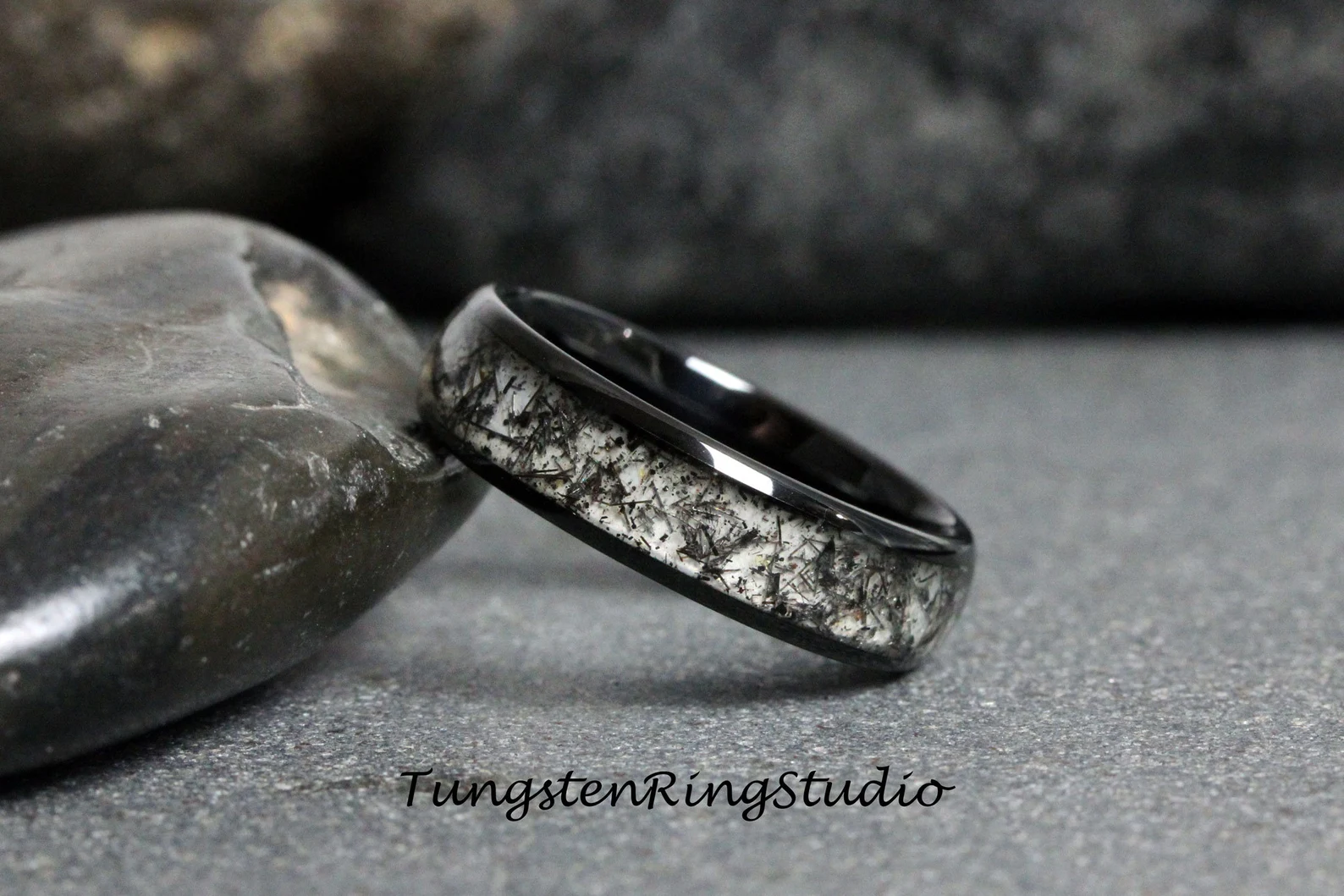 Black Rutilated Quartz Inlaid Black Tungsten Ring – TungstenRingStudio