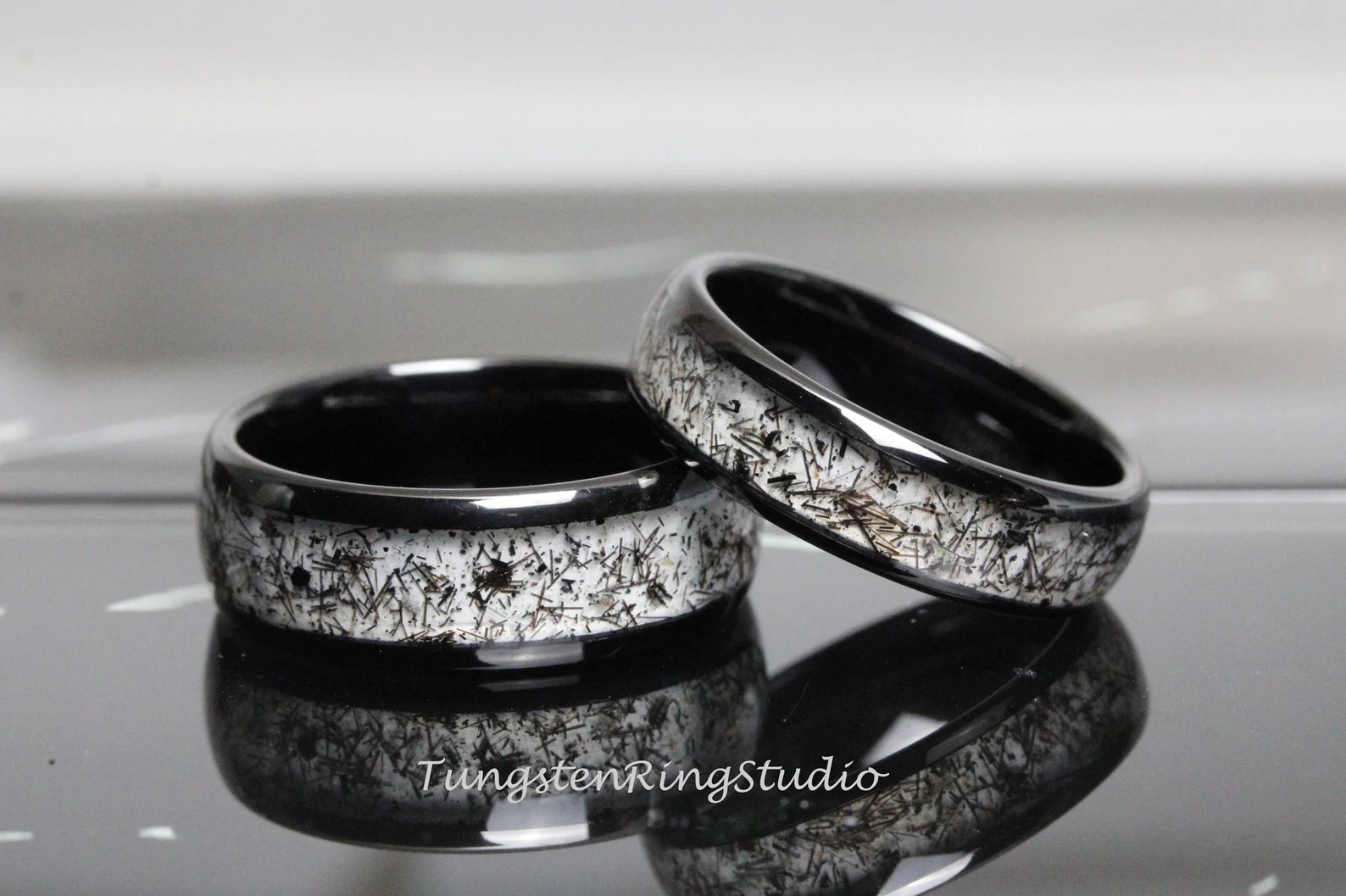 Black Rutilated Quartz Ring 8mm 6mm 4mm Black Polish Tungsten Wedding Ring Rutilated Wedding Men & Women Polished Dome
