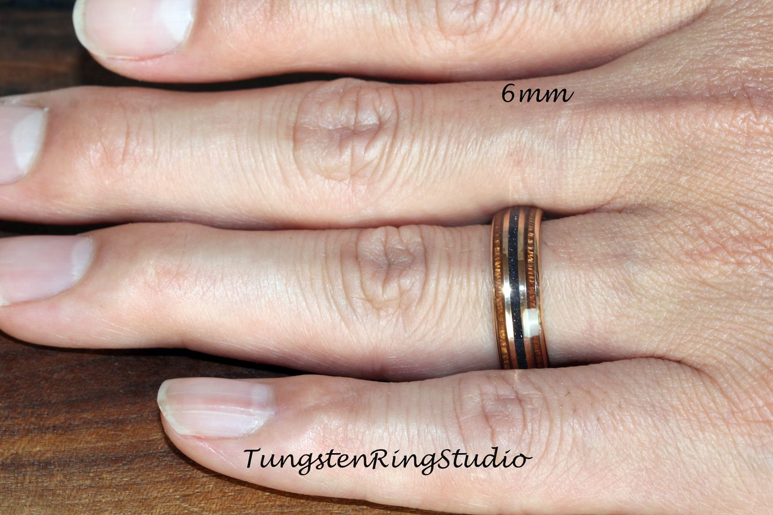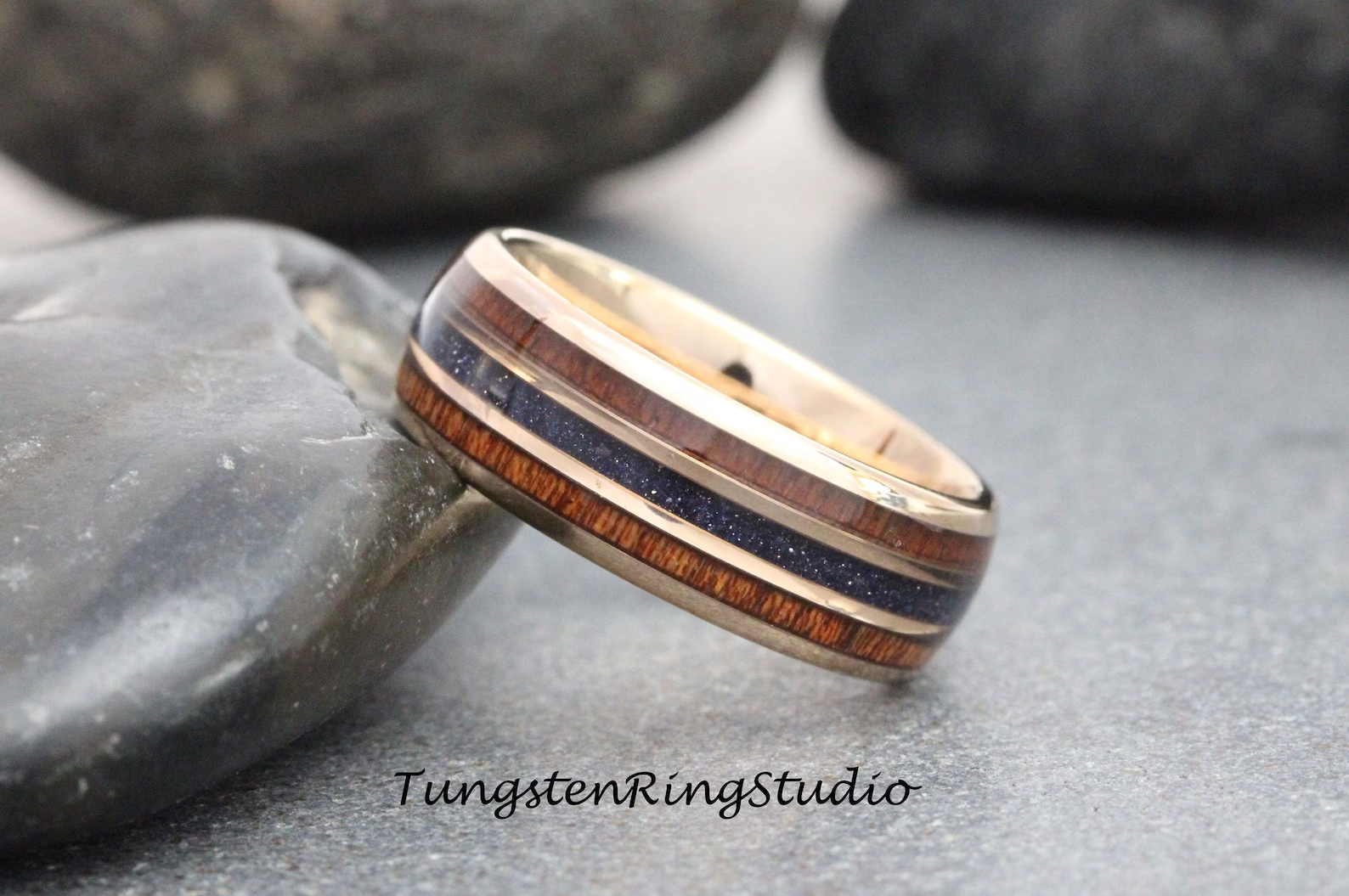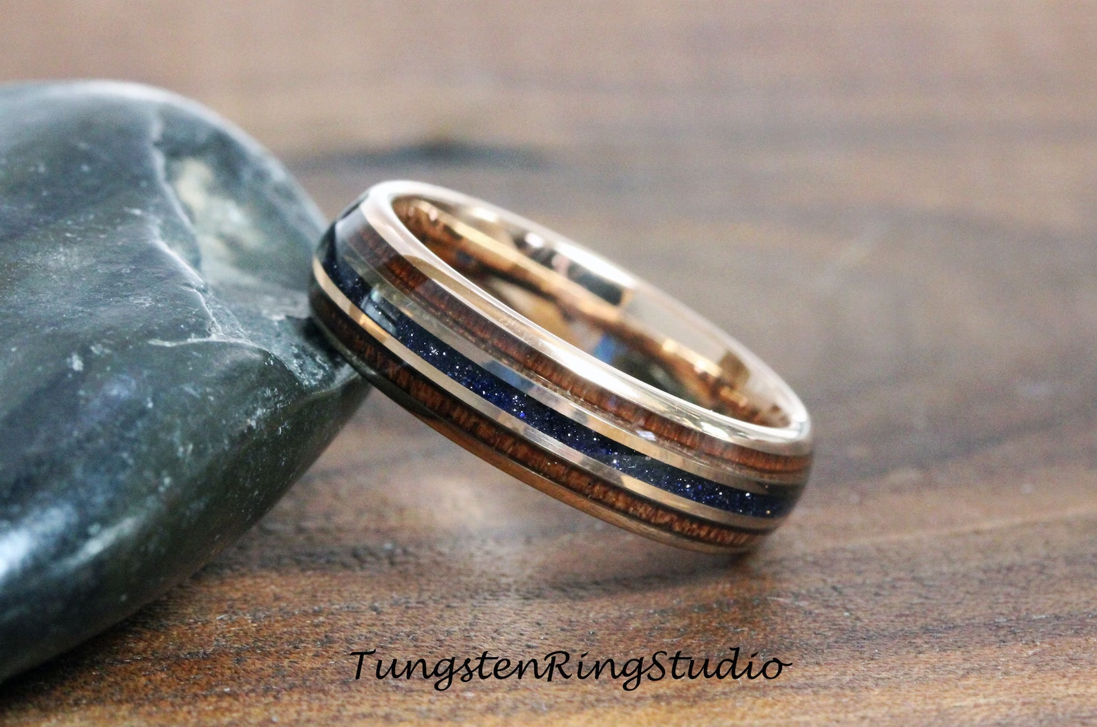 Nebula Blue Sandstone Koa Wood Rose Gold Tungsten Ring 8mm – TungstenRingStudio