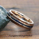 Nebula Koa Wood Rose Gold Tungsten Wedding Ring Blue Sandstone 8mm tungsten carbide ring Mens Ring Mans Womens Anniversary Ring